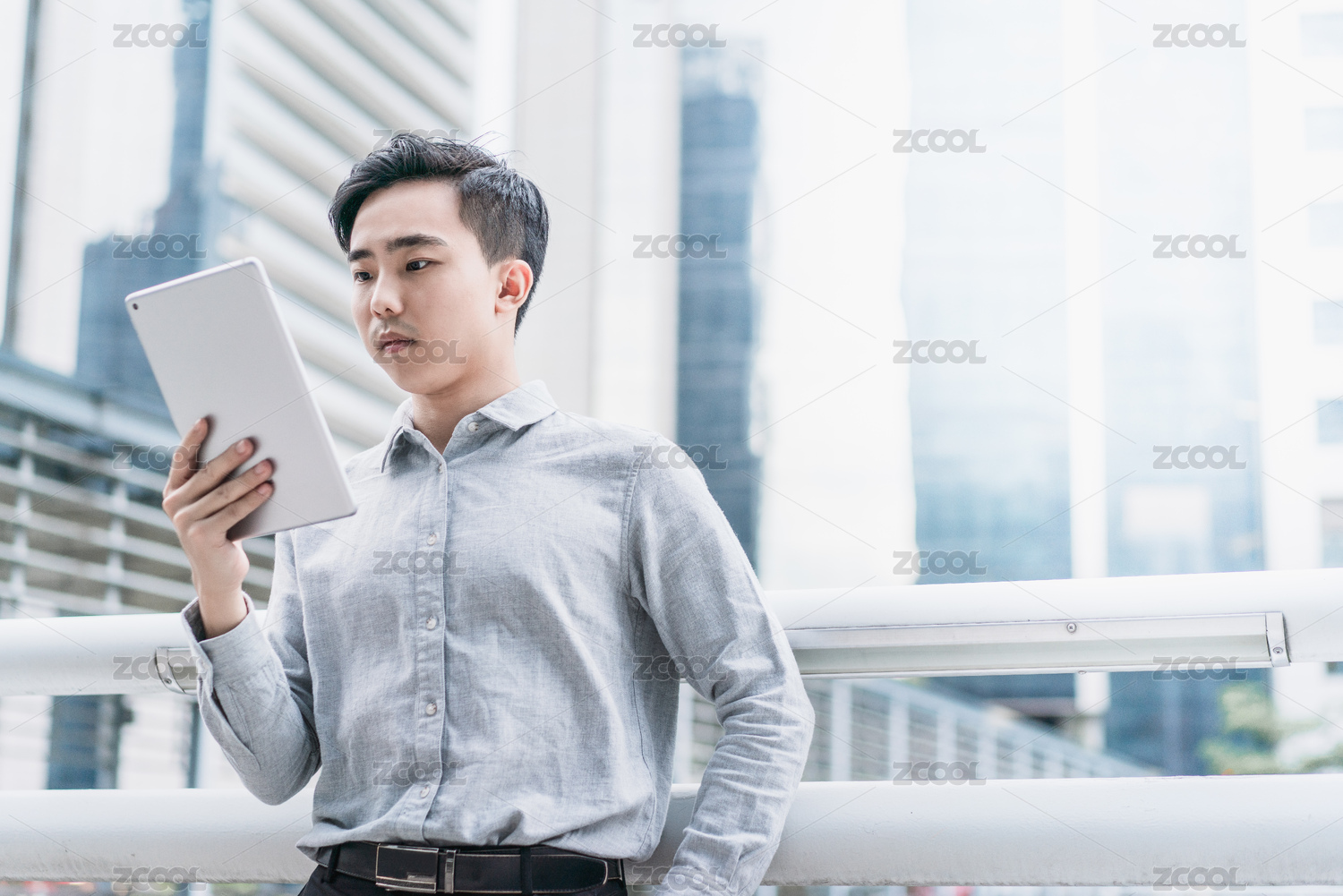 商務(wù)人士在戶外使用平板電腦