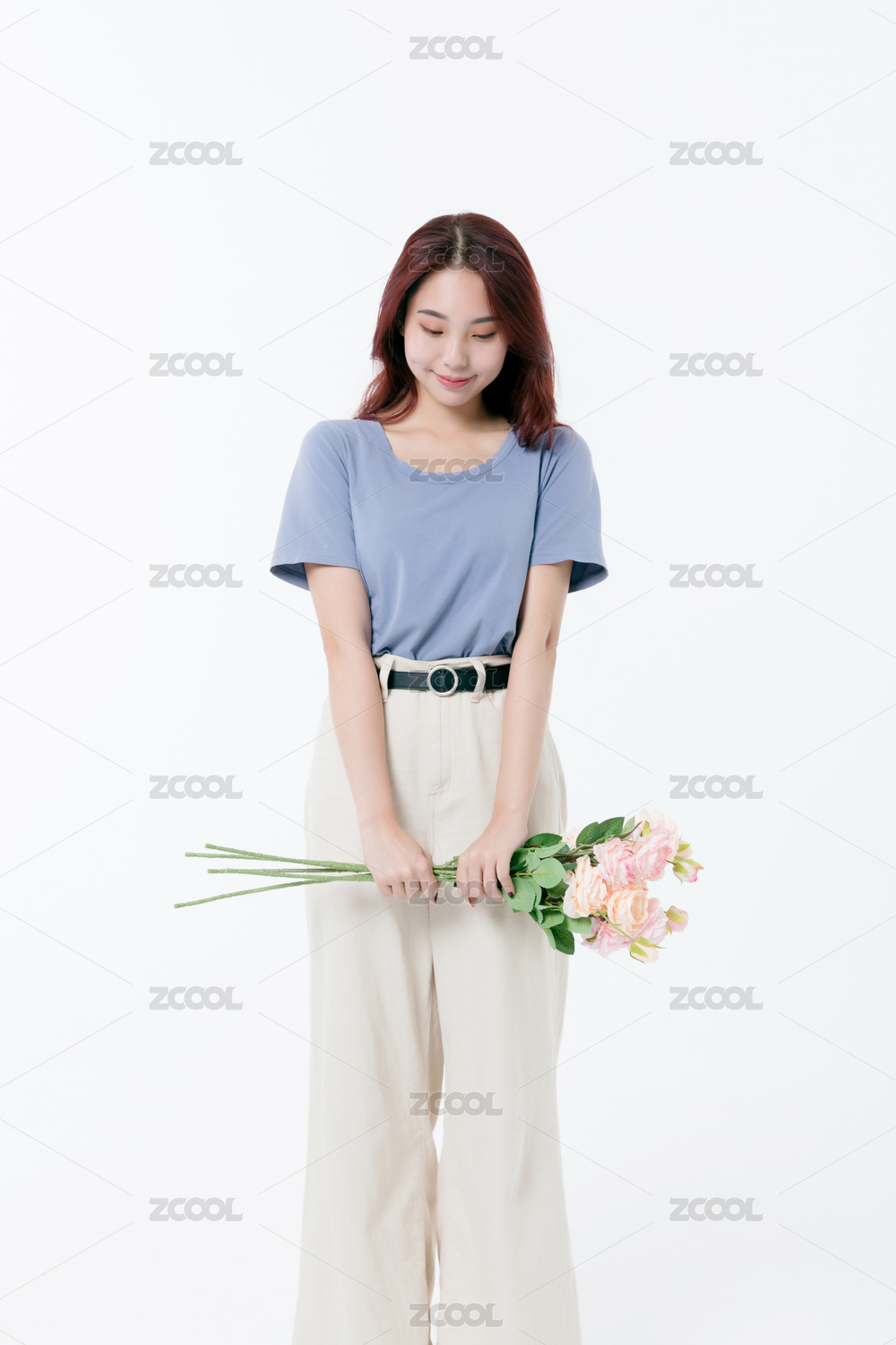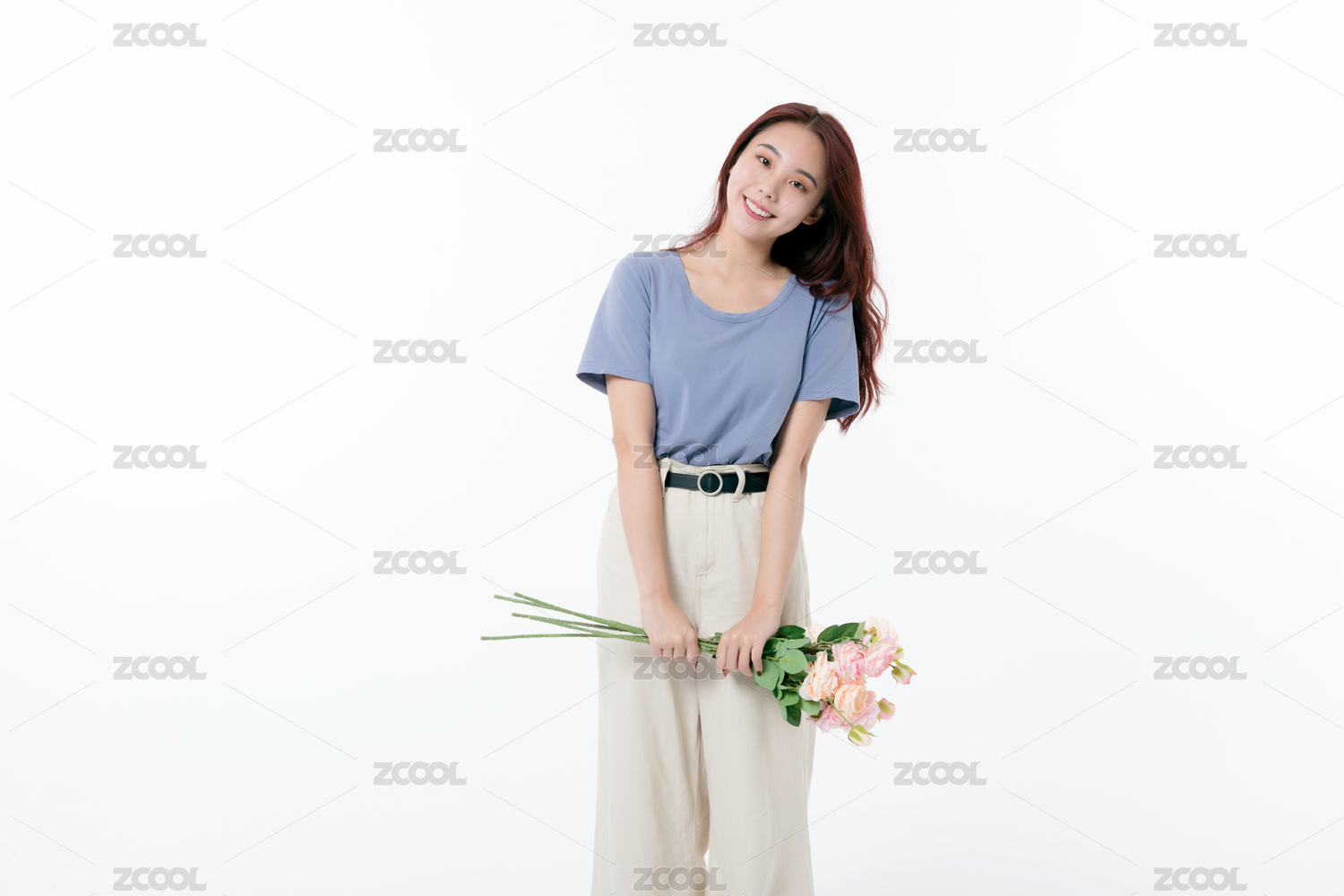 害羞的拿著花束的長(zhǎng)發(fā)女生
