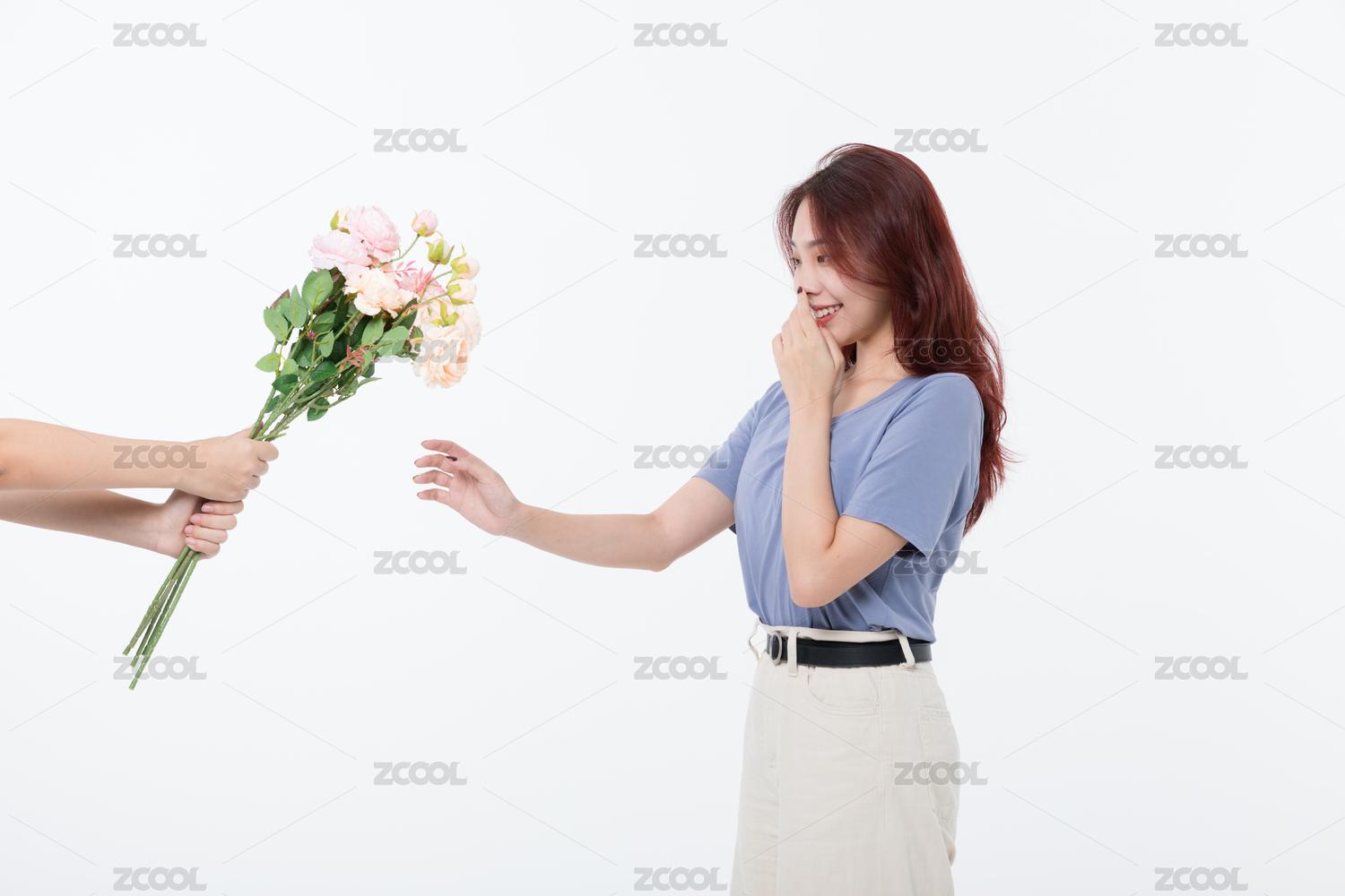 收到鮮花害羞的長(zhǎng)發(fā)女生