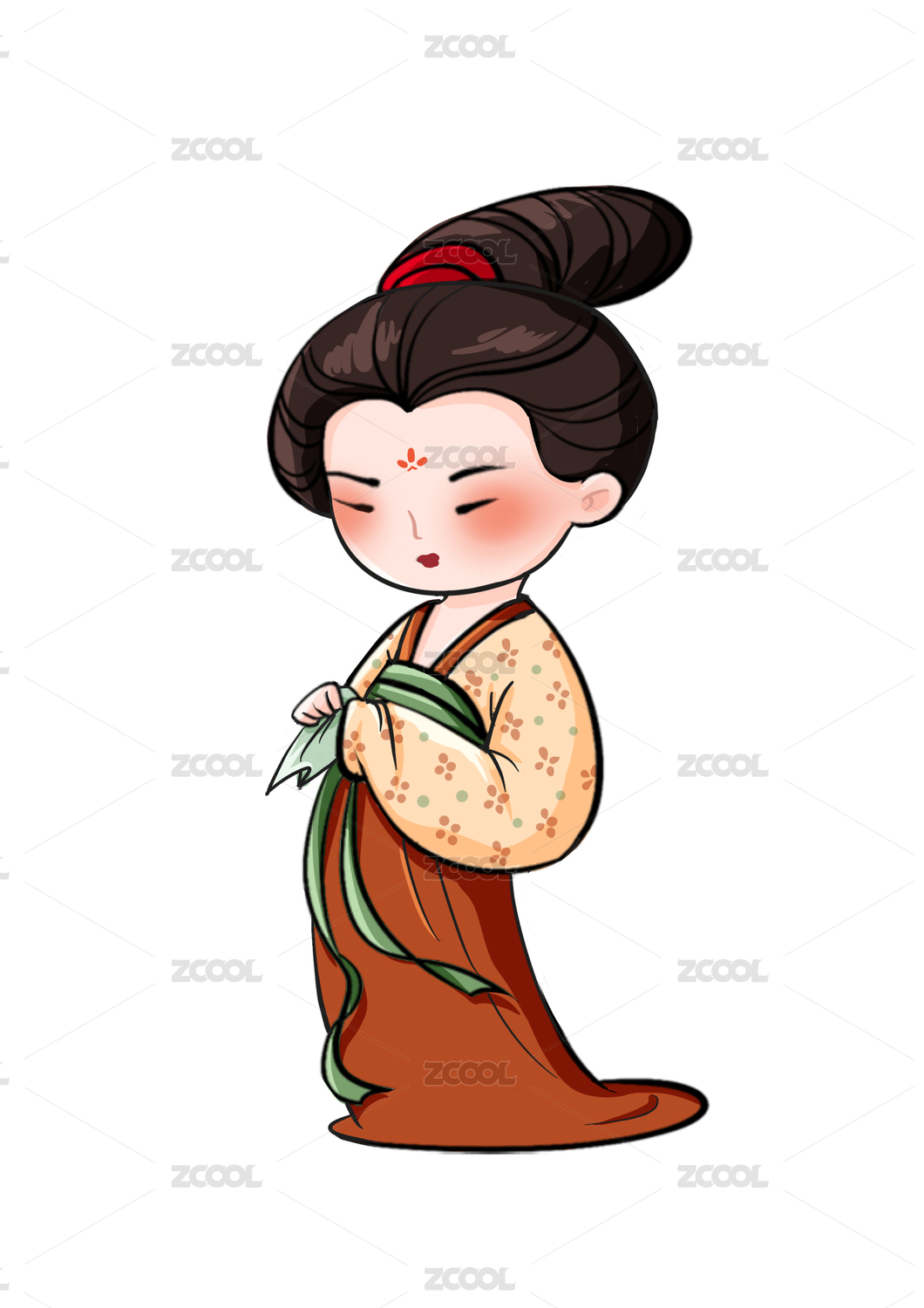 唐代低頭害羞的仕女國(guó)潮插畫(huà)