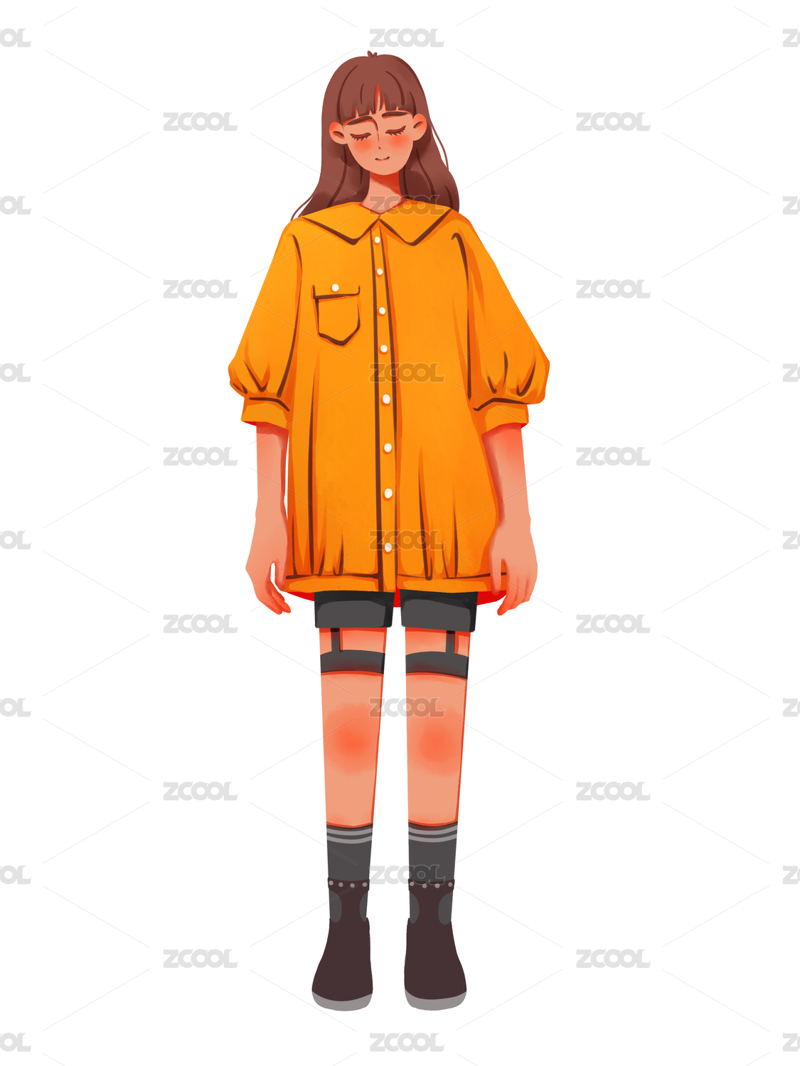 雙手交疊低頭害羞站立的古風(fēng)仕女