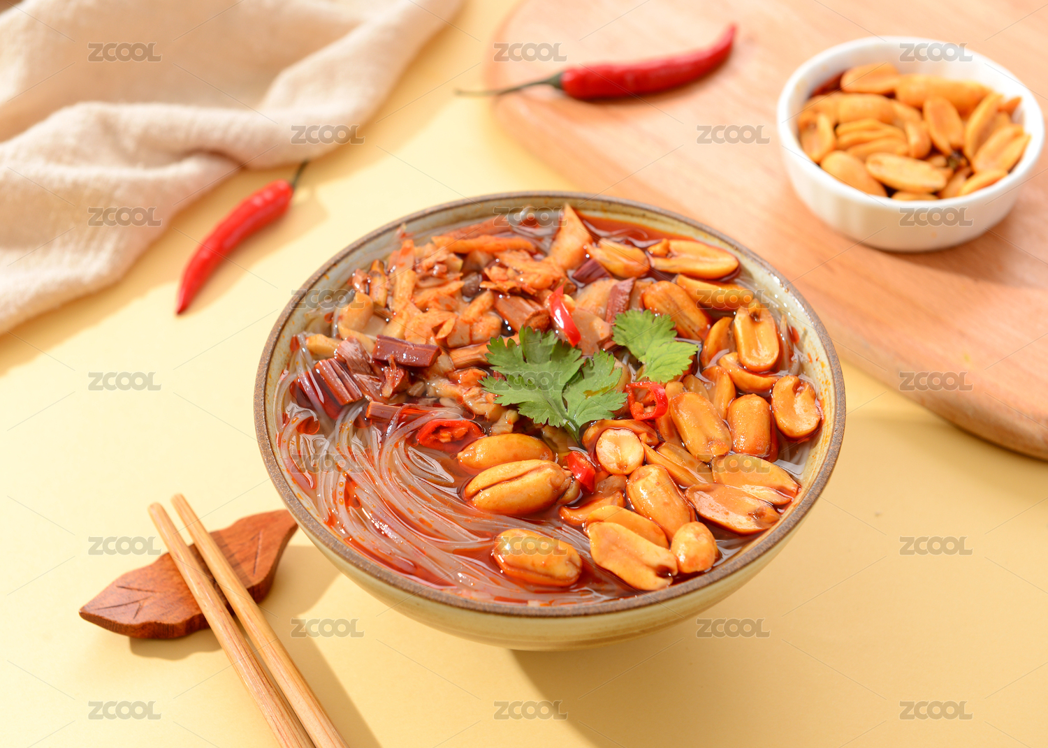 棕色木紋桌面上放著一份涼拌酸辣土豆絲