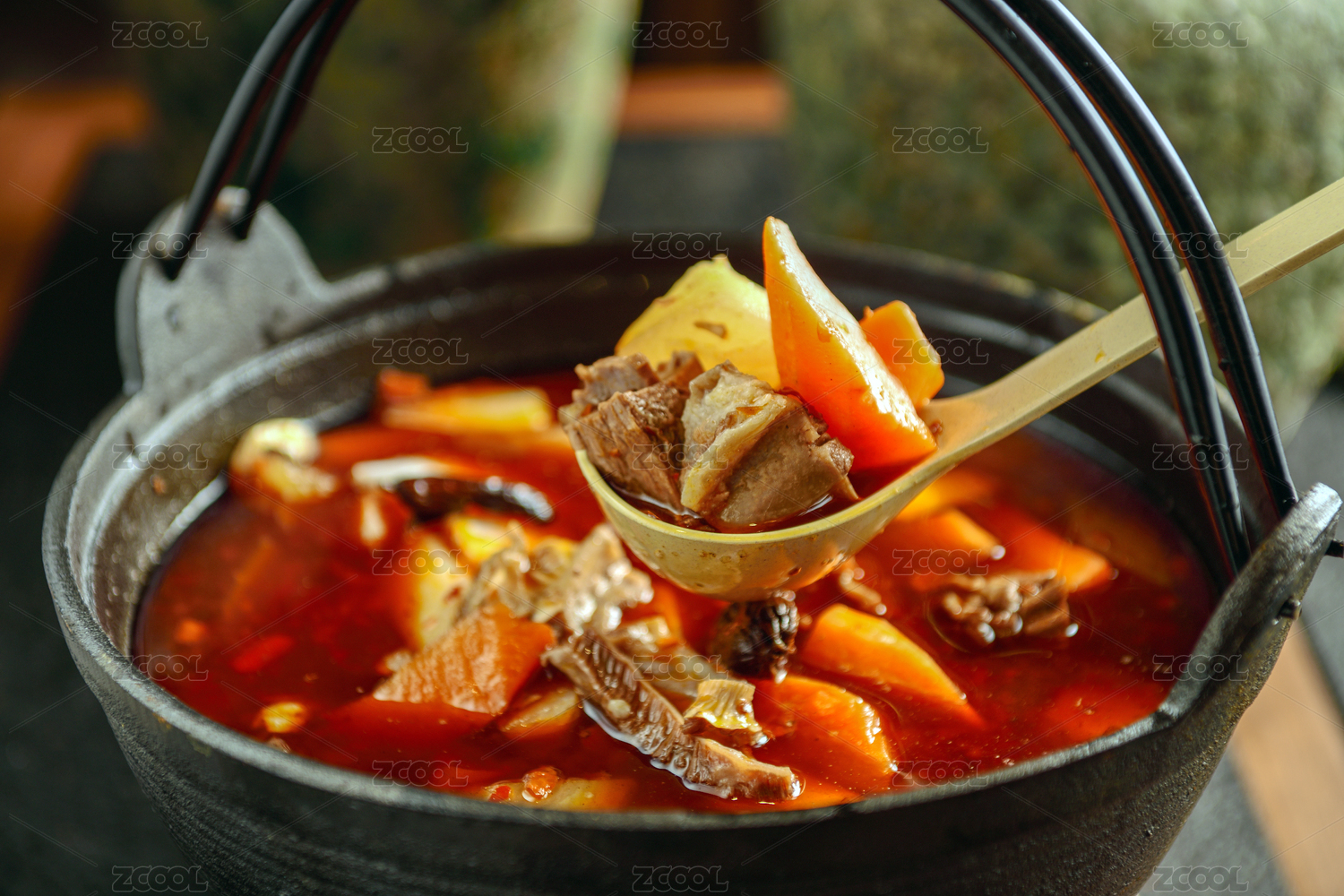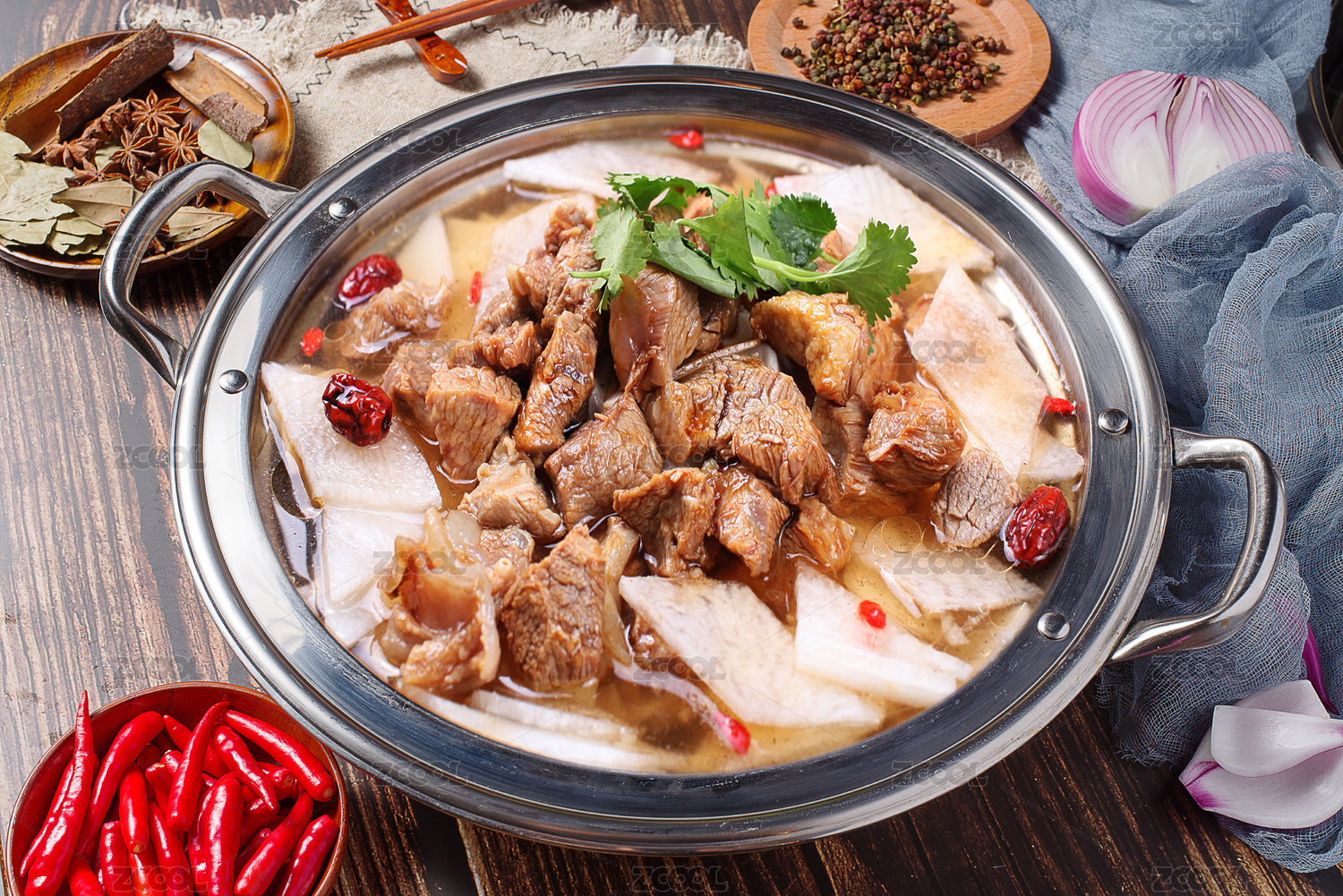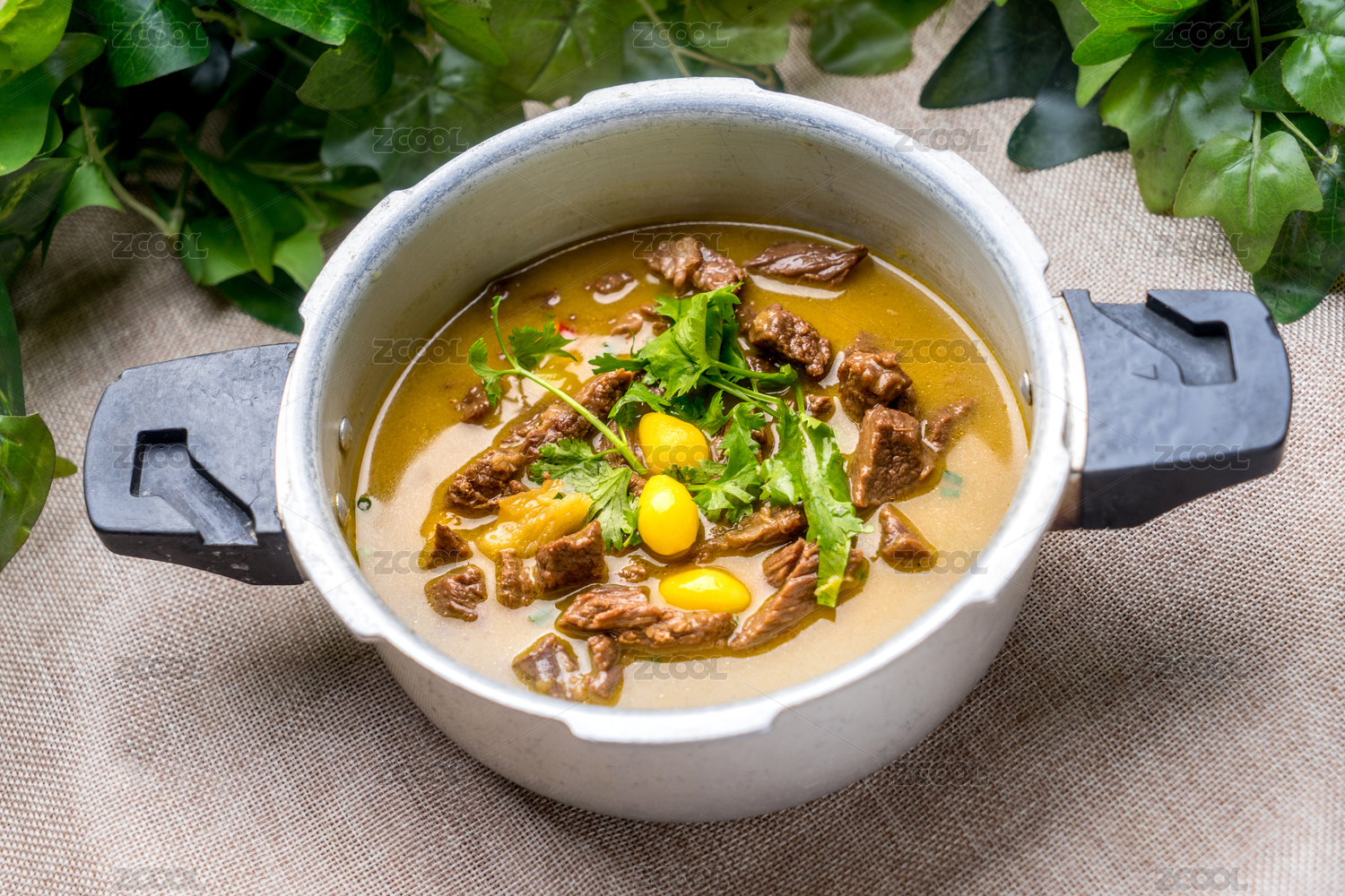 鮮美多汁的燉牛腩盛放在鋁鍋中
