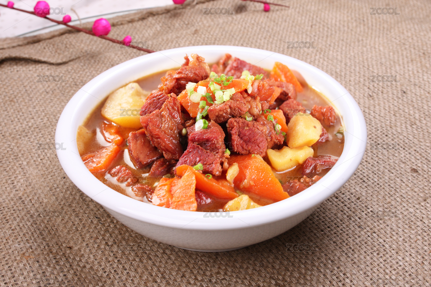 白背景一盤家常菜土豆燉牛腩