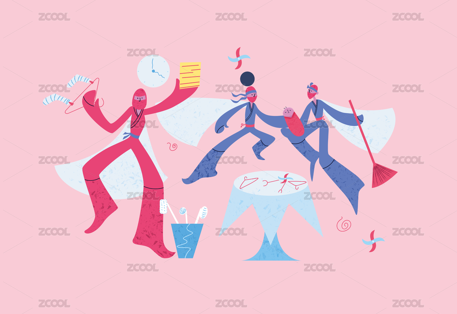多才多藝正在做家務(wù)的忍者全能型媽媽