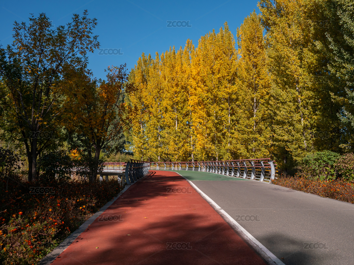 秋天公園里彩色的健步道