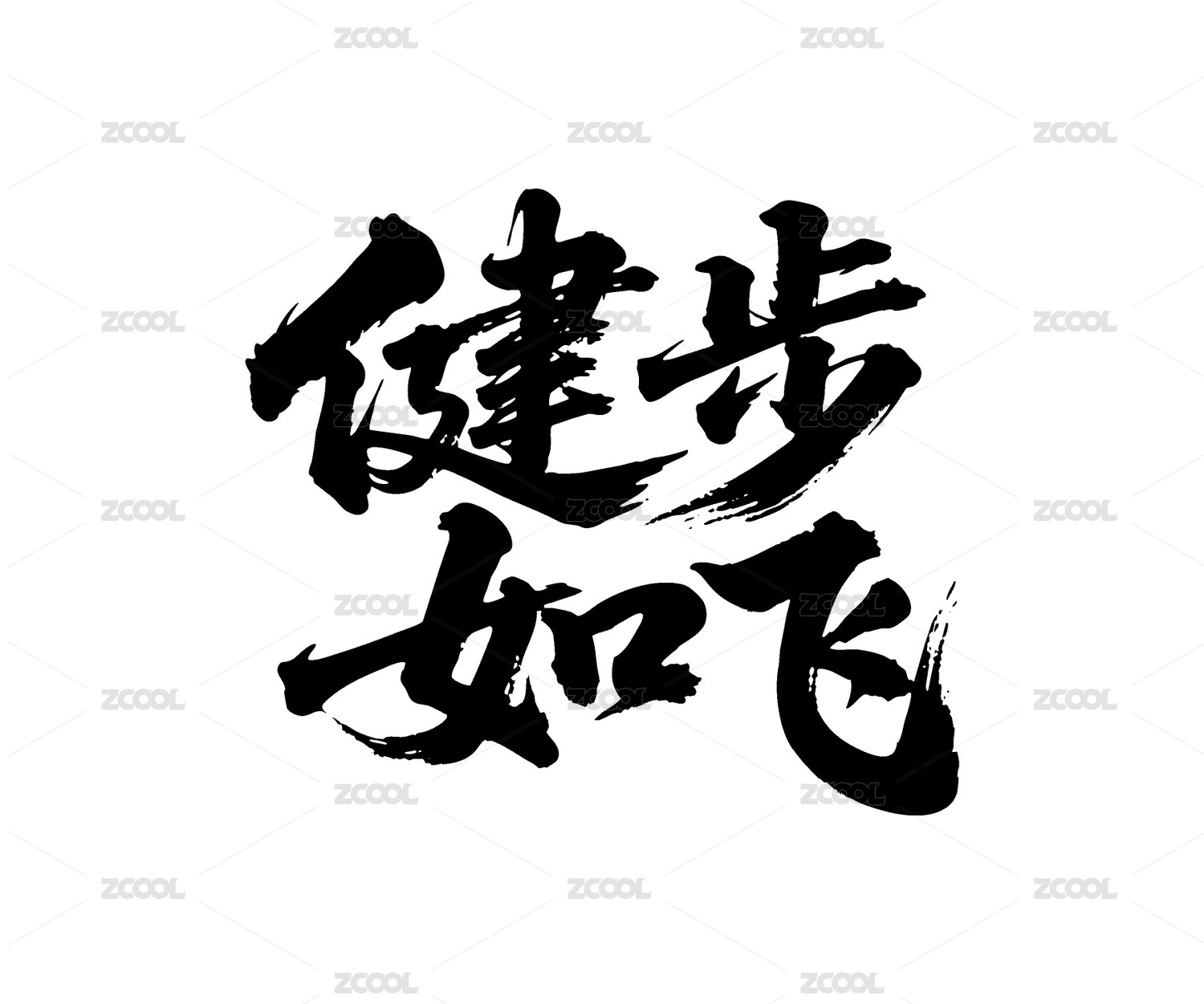 健步如飛矢量書法手寫毛筆字