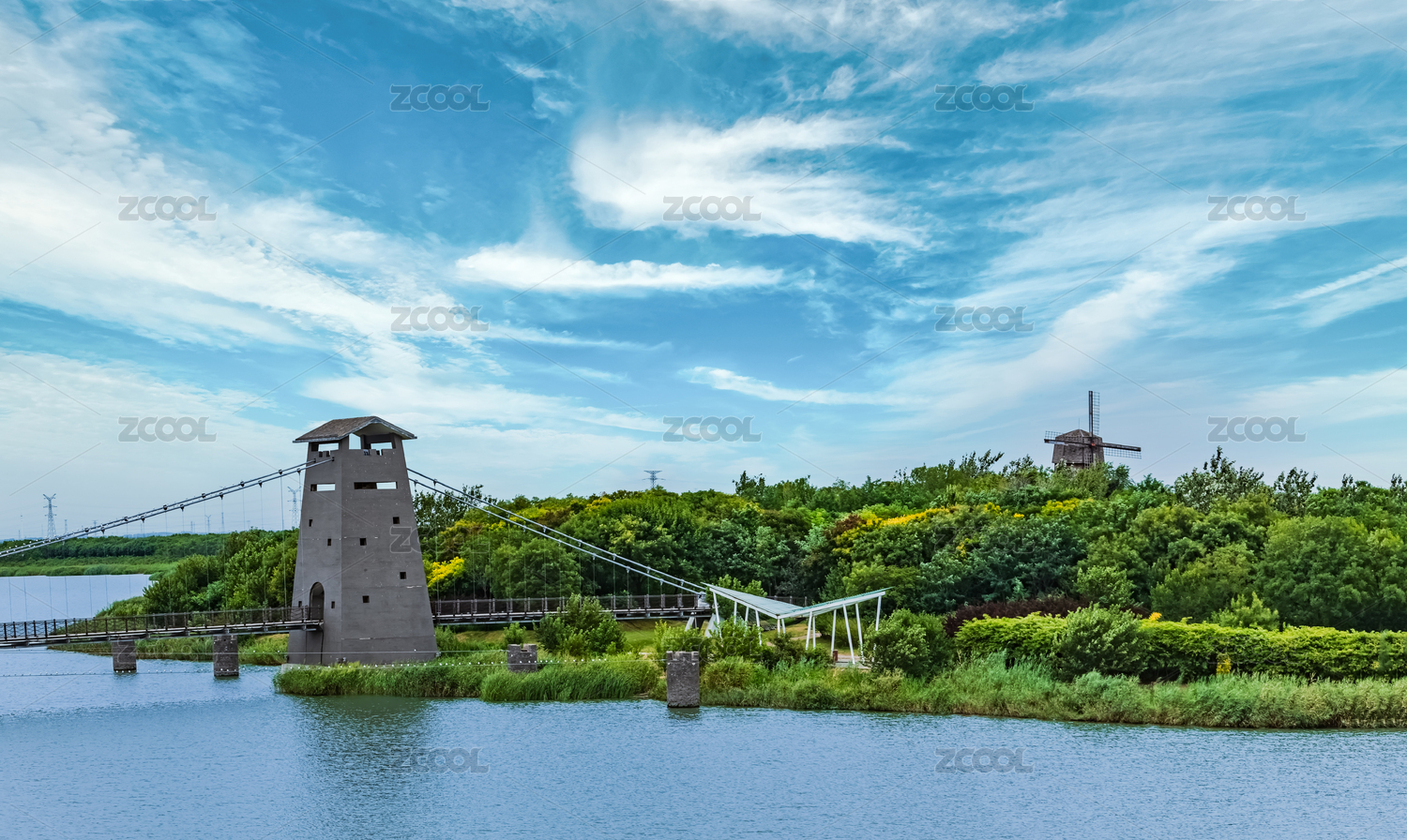 天津市濱海新區(qū)北塘古鎮(zhèn)三河島碉樓木吊橋建