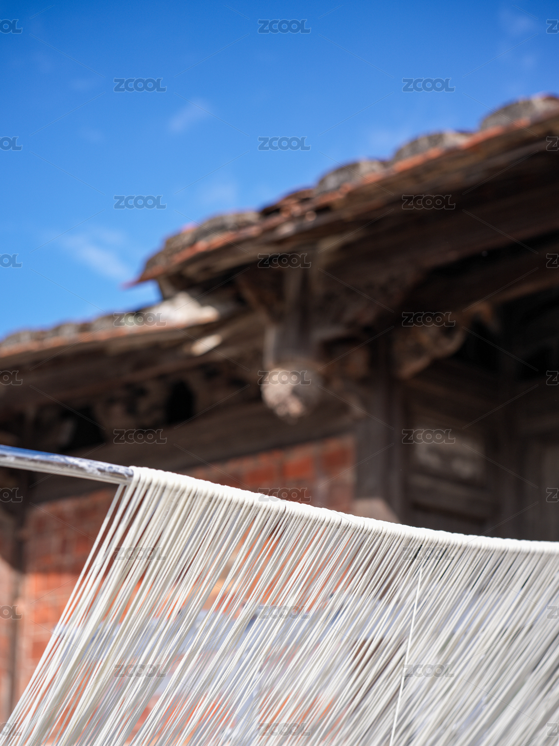 古厝前晾曬的面條