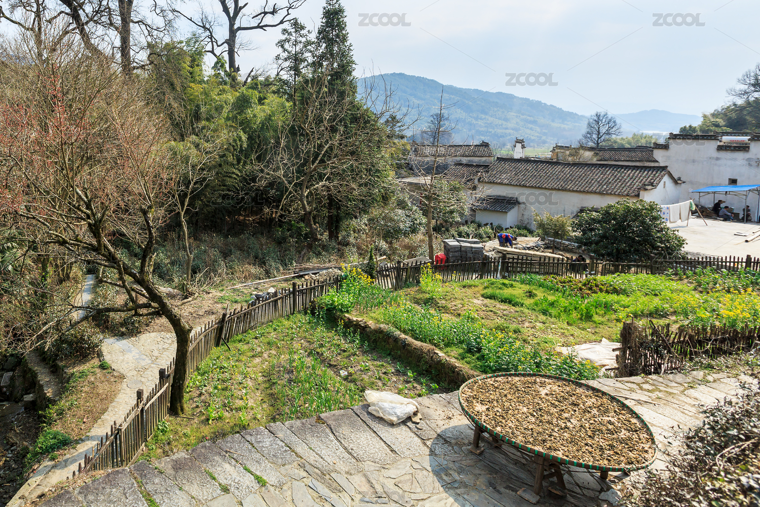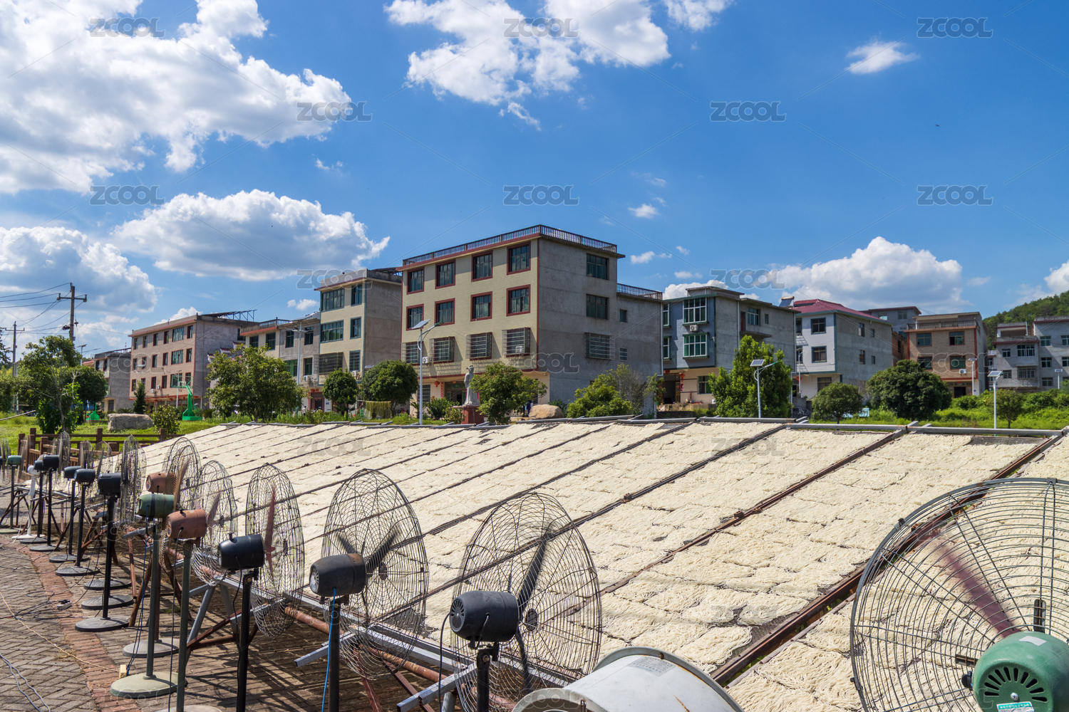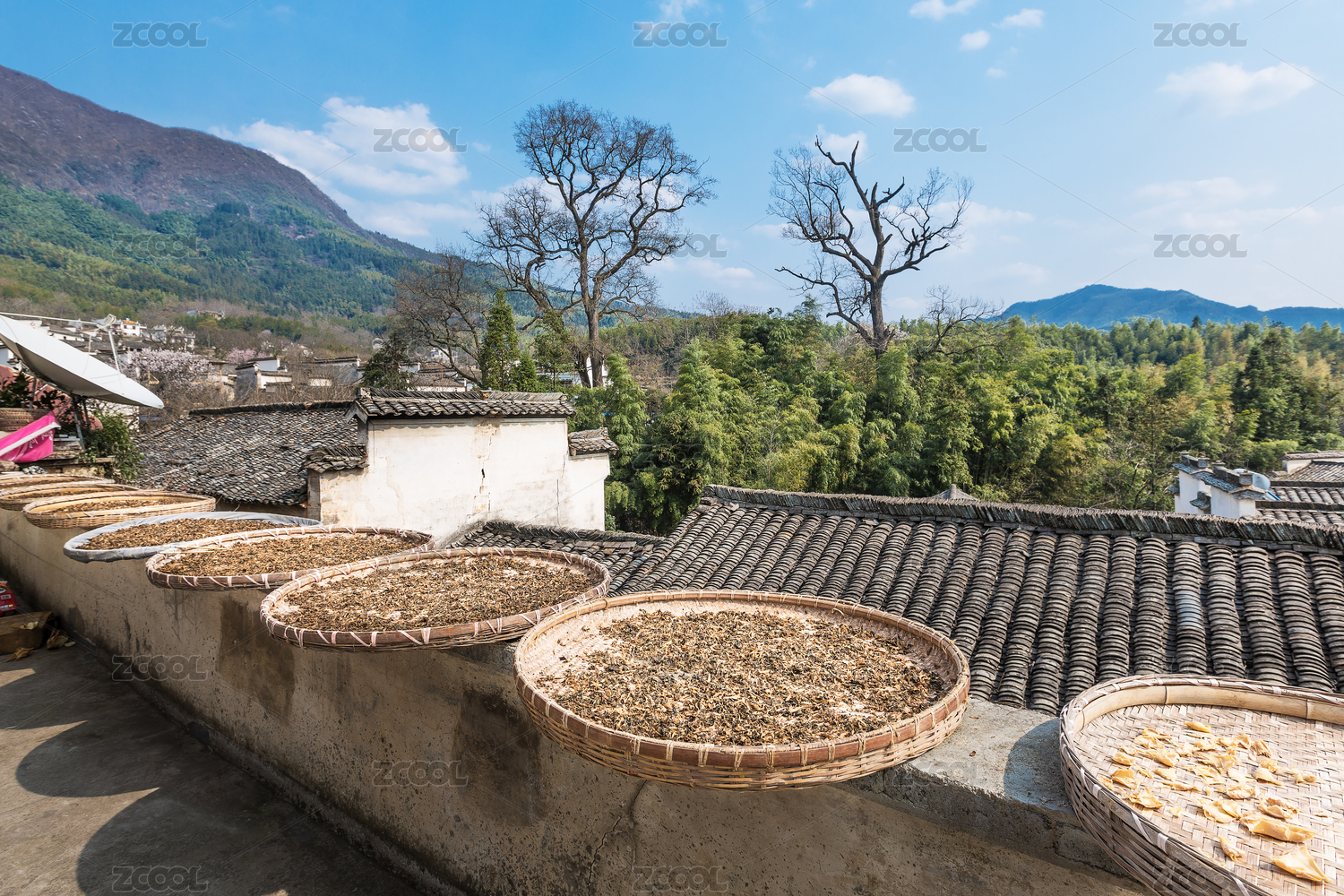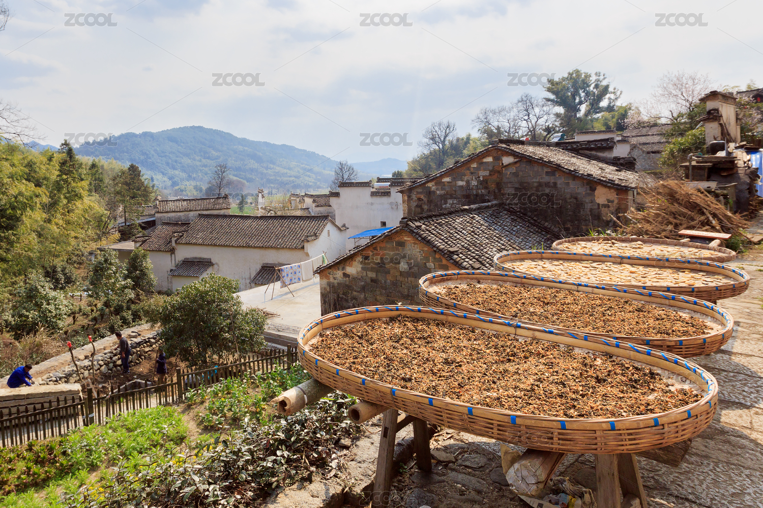 上高縣馬湖村陽光下晾曬米粉