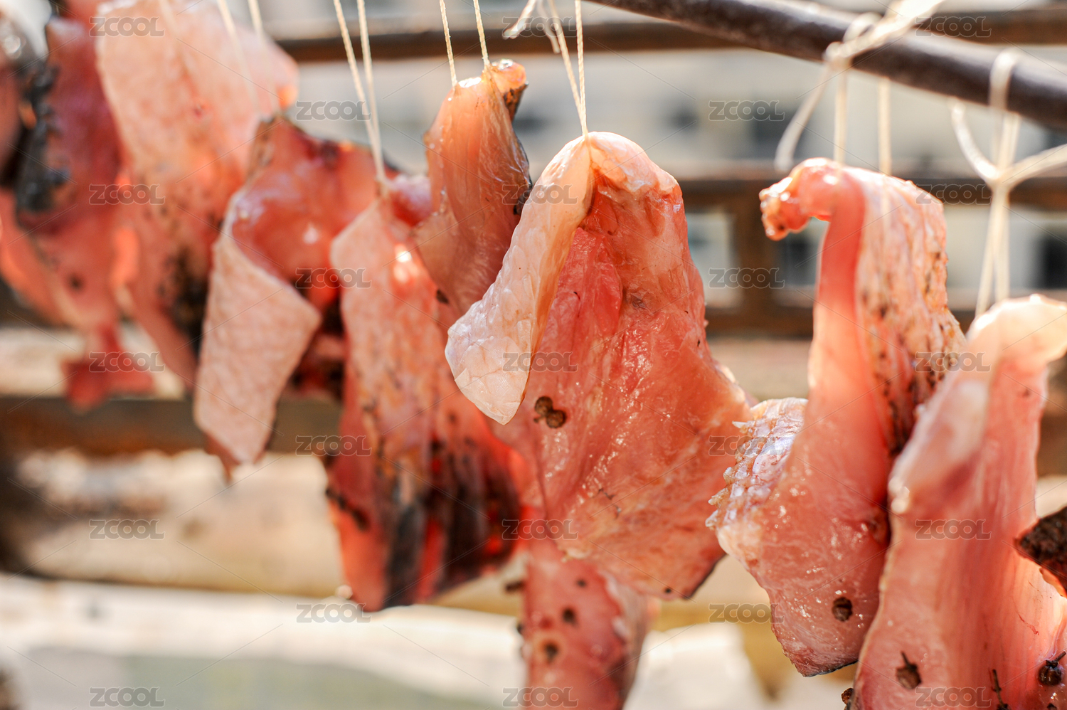 冬季晾曬的臘腸局部特寫