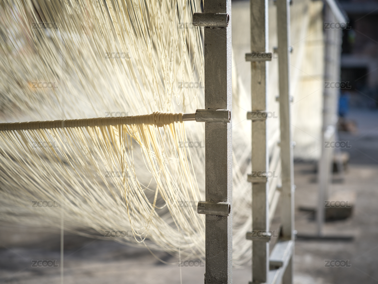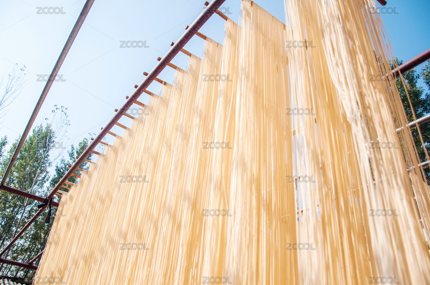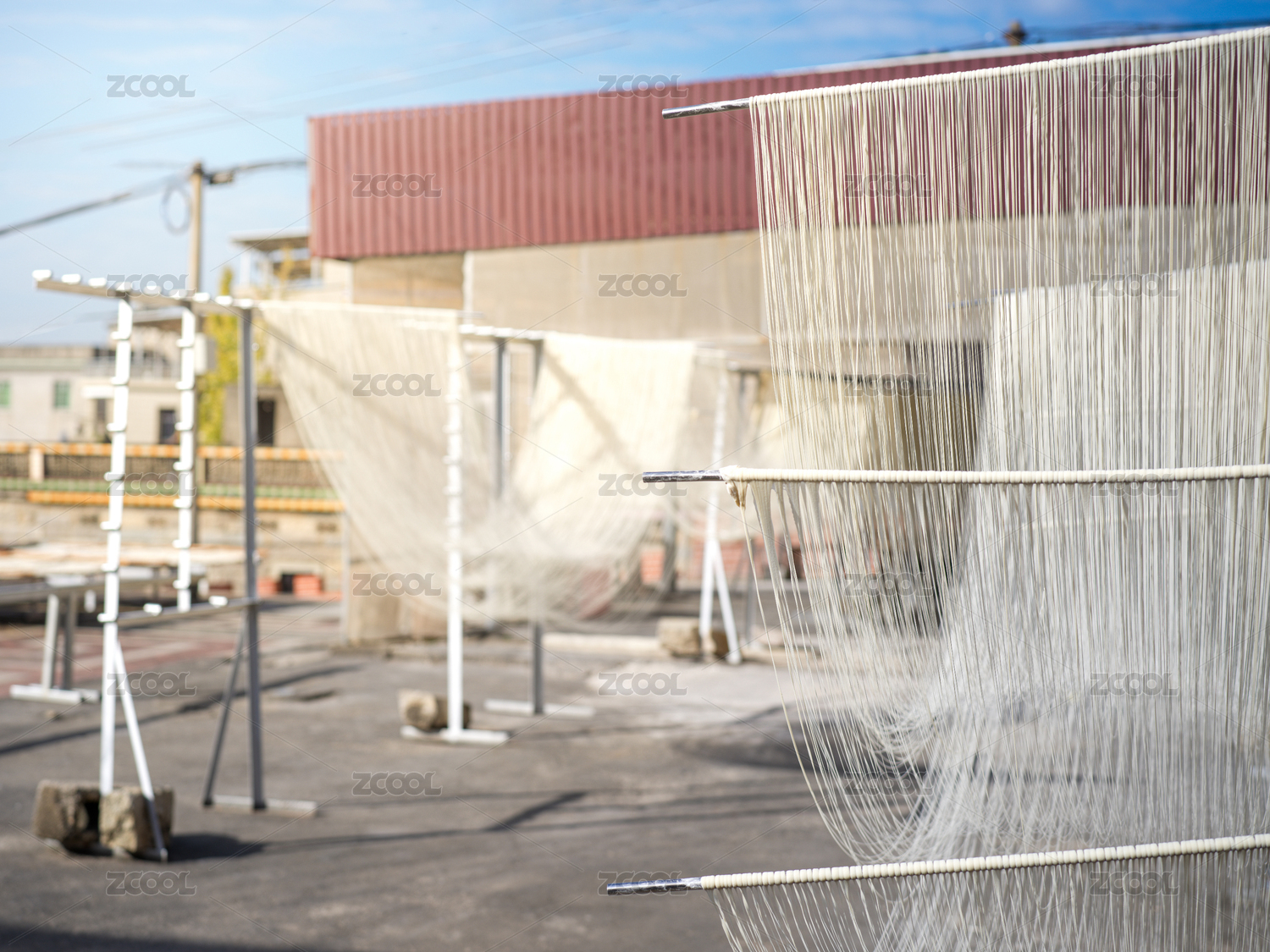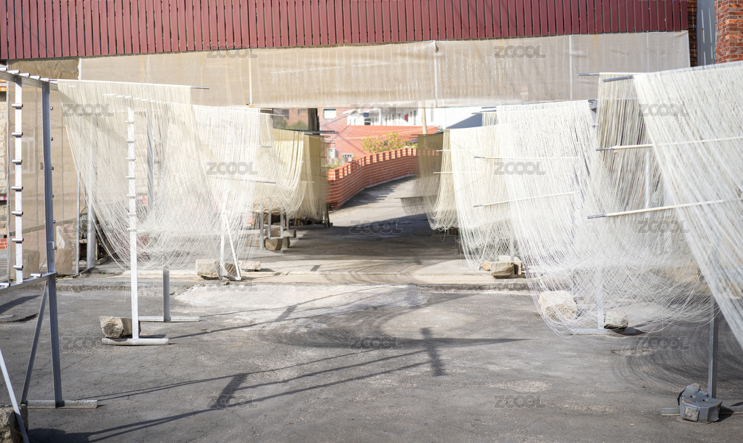 加工后晾曬在戶外的面條