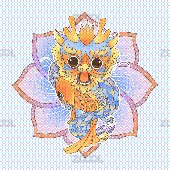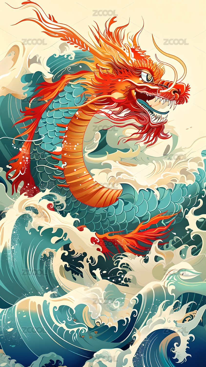 國潮動物龍在海里中式傳統(tǒng)吉祥紋樣