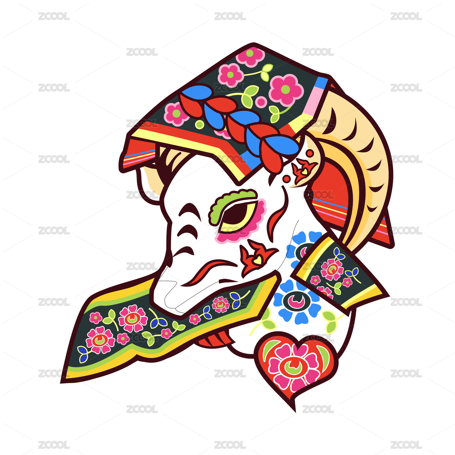 十二生肖動物花卉元寶福字喜慶春節(jié)紅色剪紙插畫