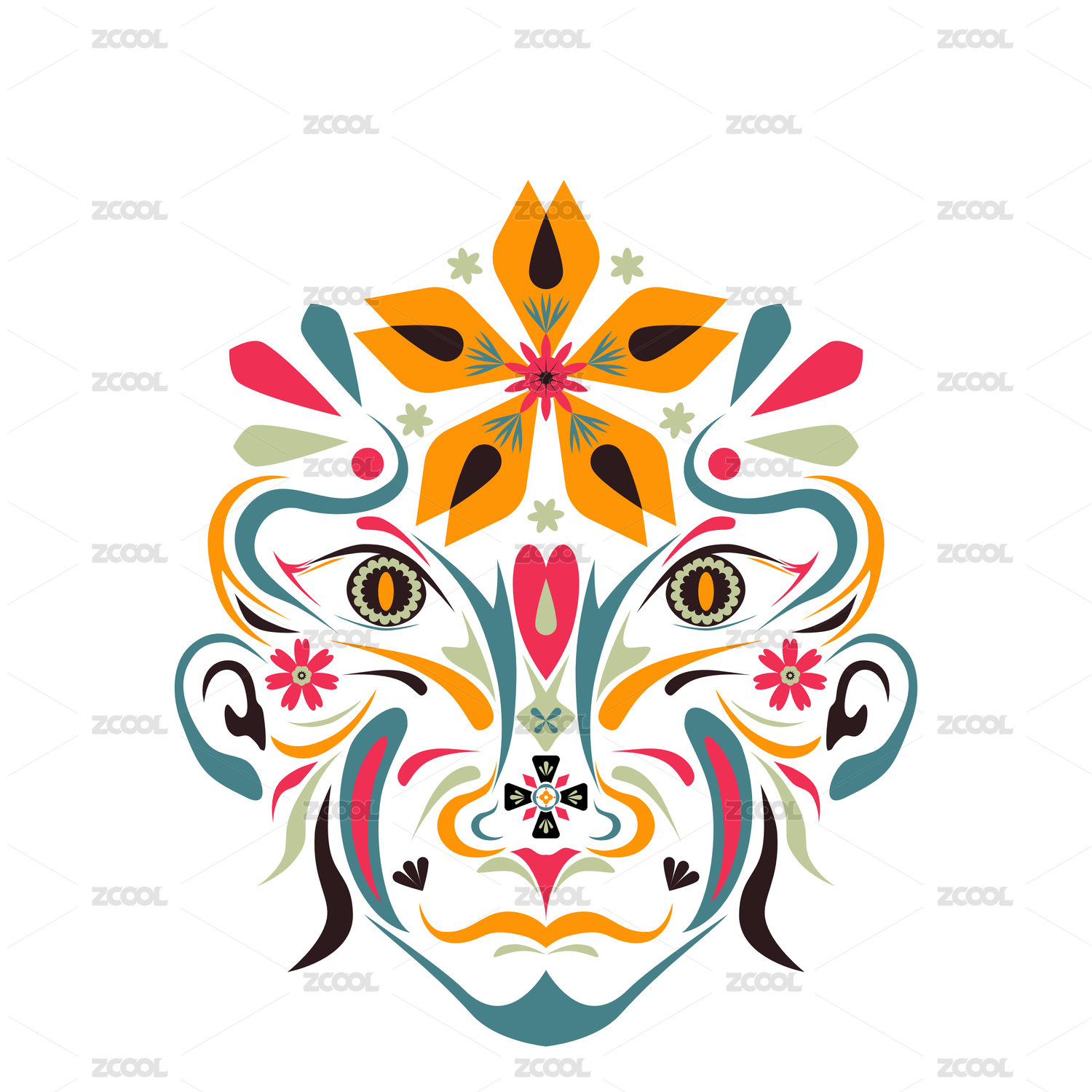 十二生肖中國風傳統(tǒng)紋樣動物頭像-猴
