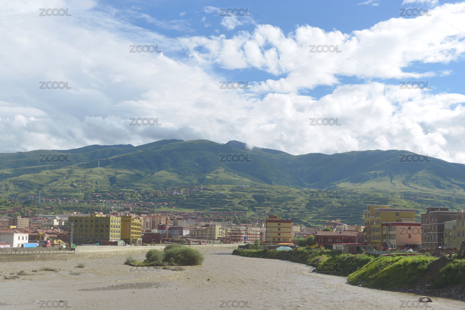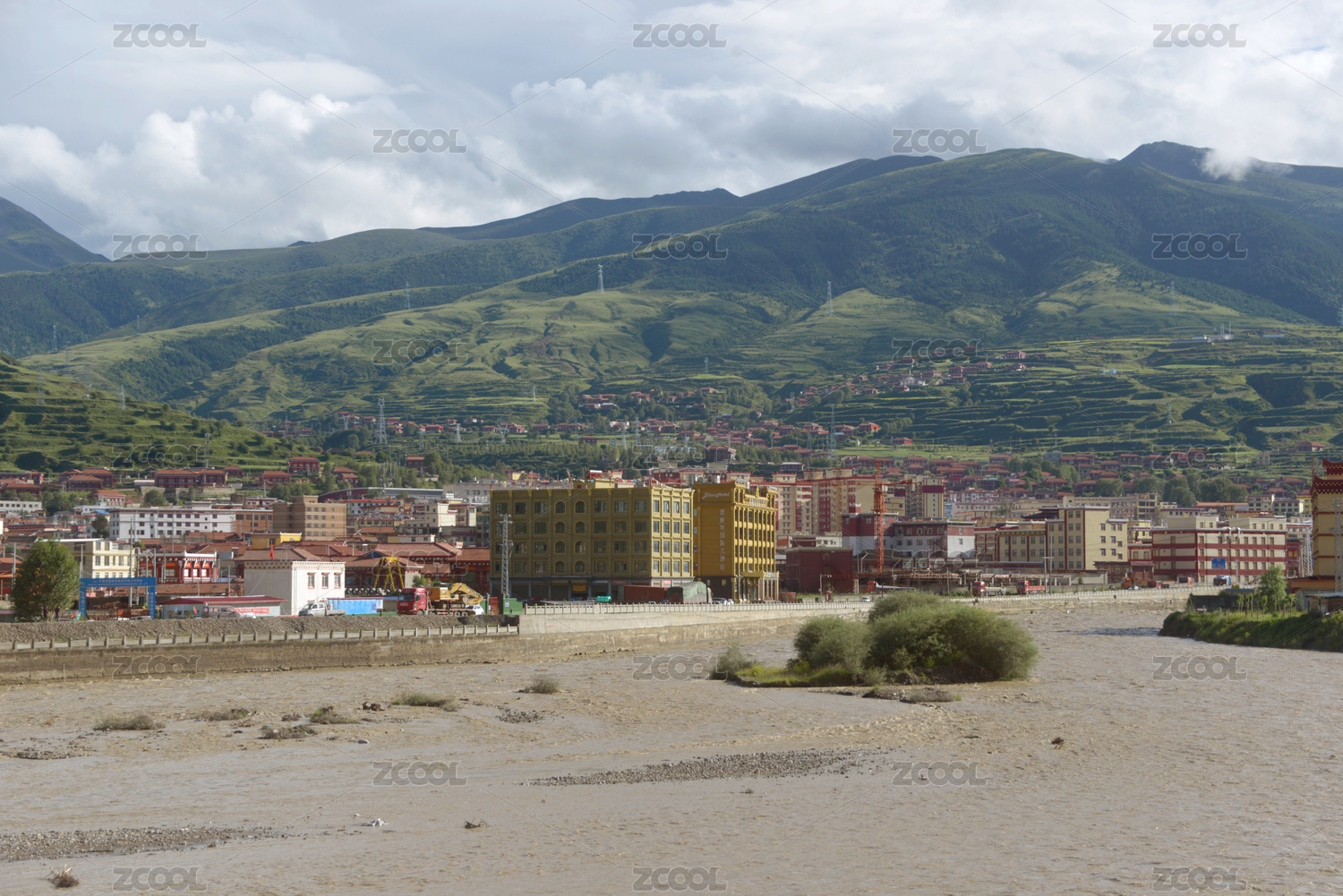中國四川甘孜州鮮水河兩岸的爐霍縣縣城