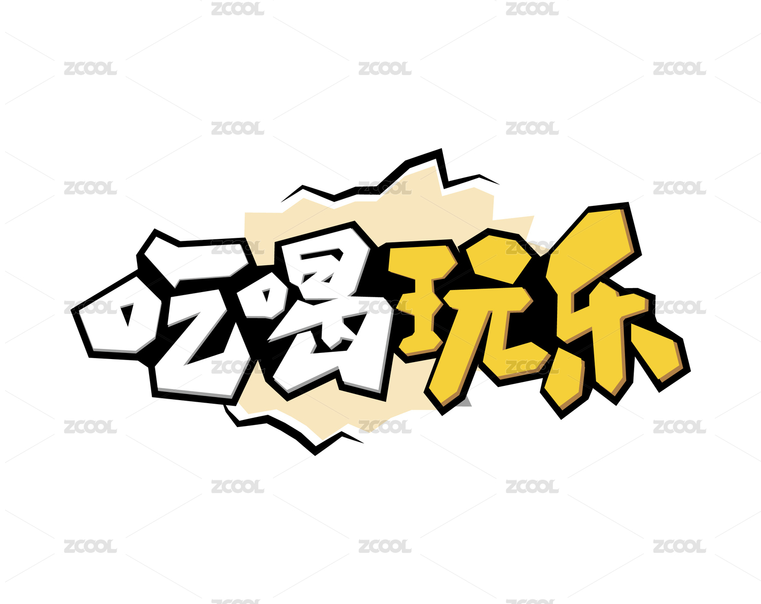 吃喝玩樂(lè)塊狀pop藝術(shù)主題字體
