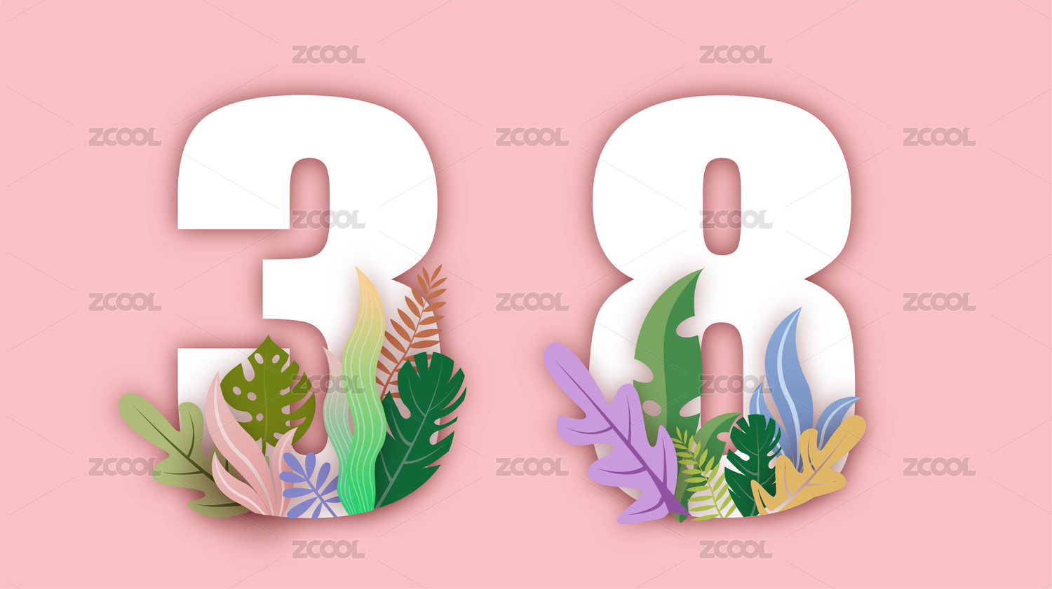 三八婦女節(jié)花草主題字體矢量插畫(huà)