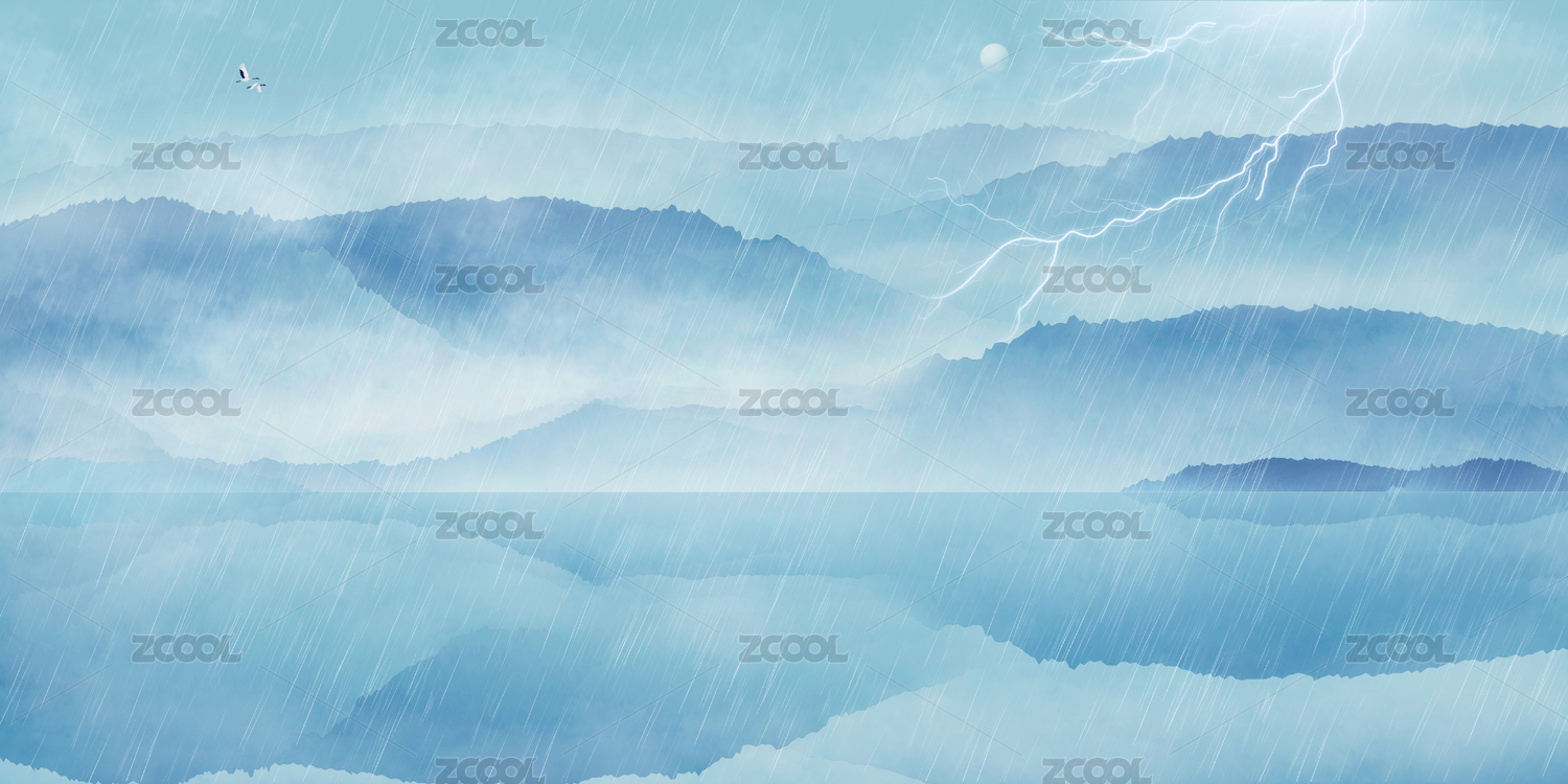 雷雨天氣的戶外山峰插畫
