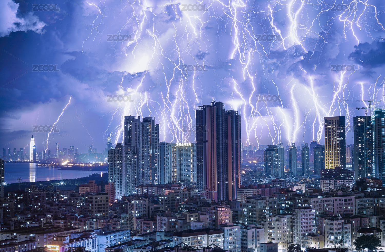 南山區(qū)雷雨天雷電密集夜景