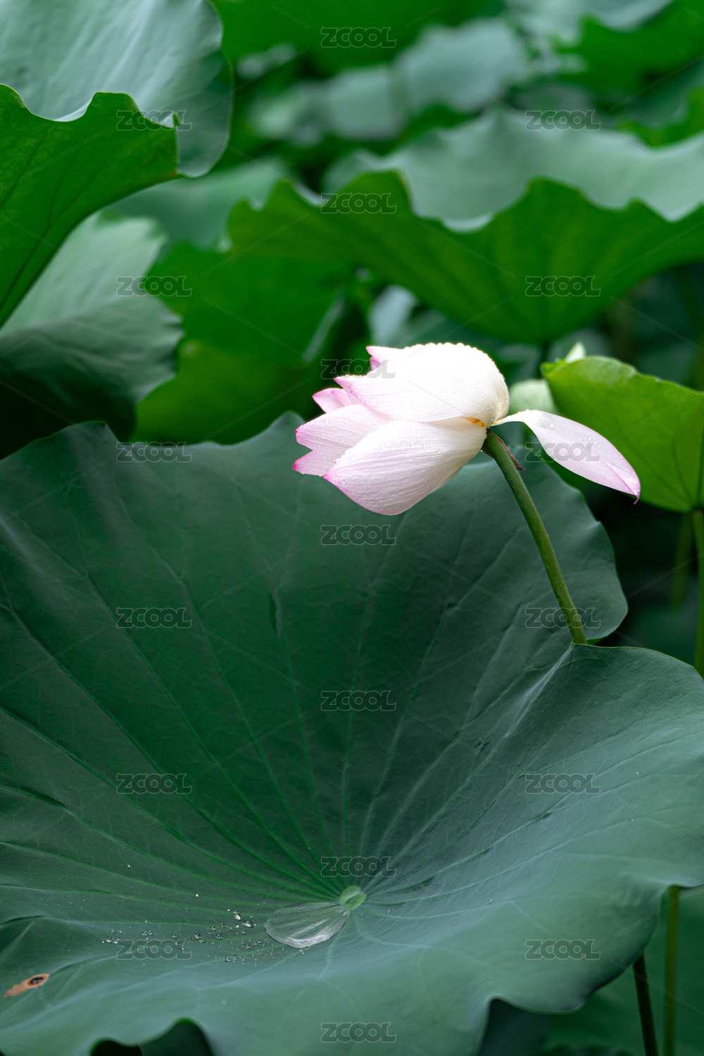 夏天雷雨后沾滿晶瑩剔透的水珠的荷葉