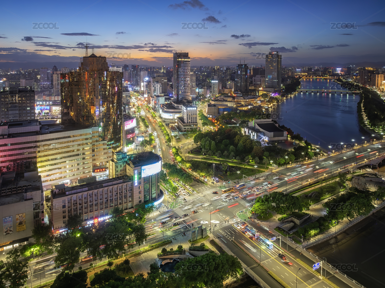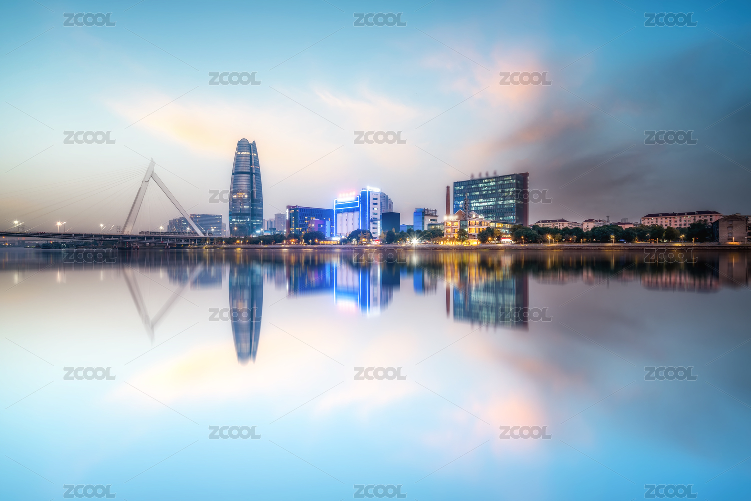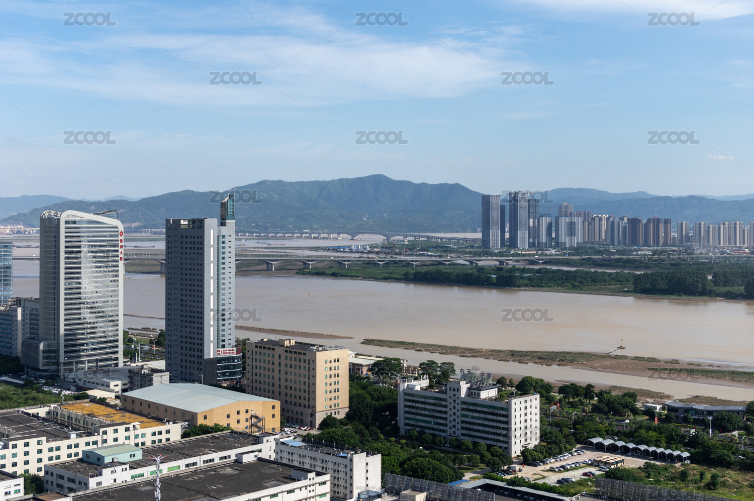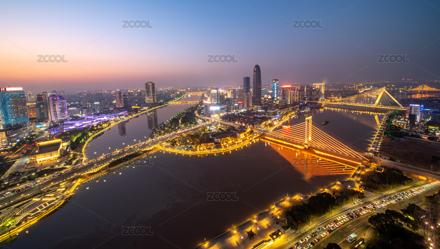 杭州蕭山義橋袁浦大橋三江口日落自然風景