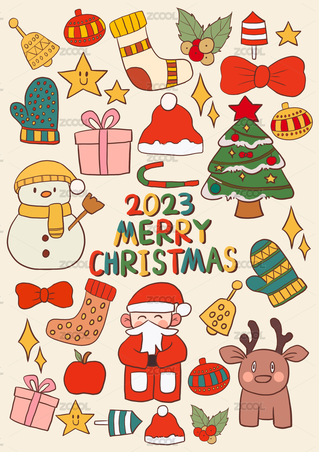 扁平矢量手繪圣誕節(jié)元素插畫
