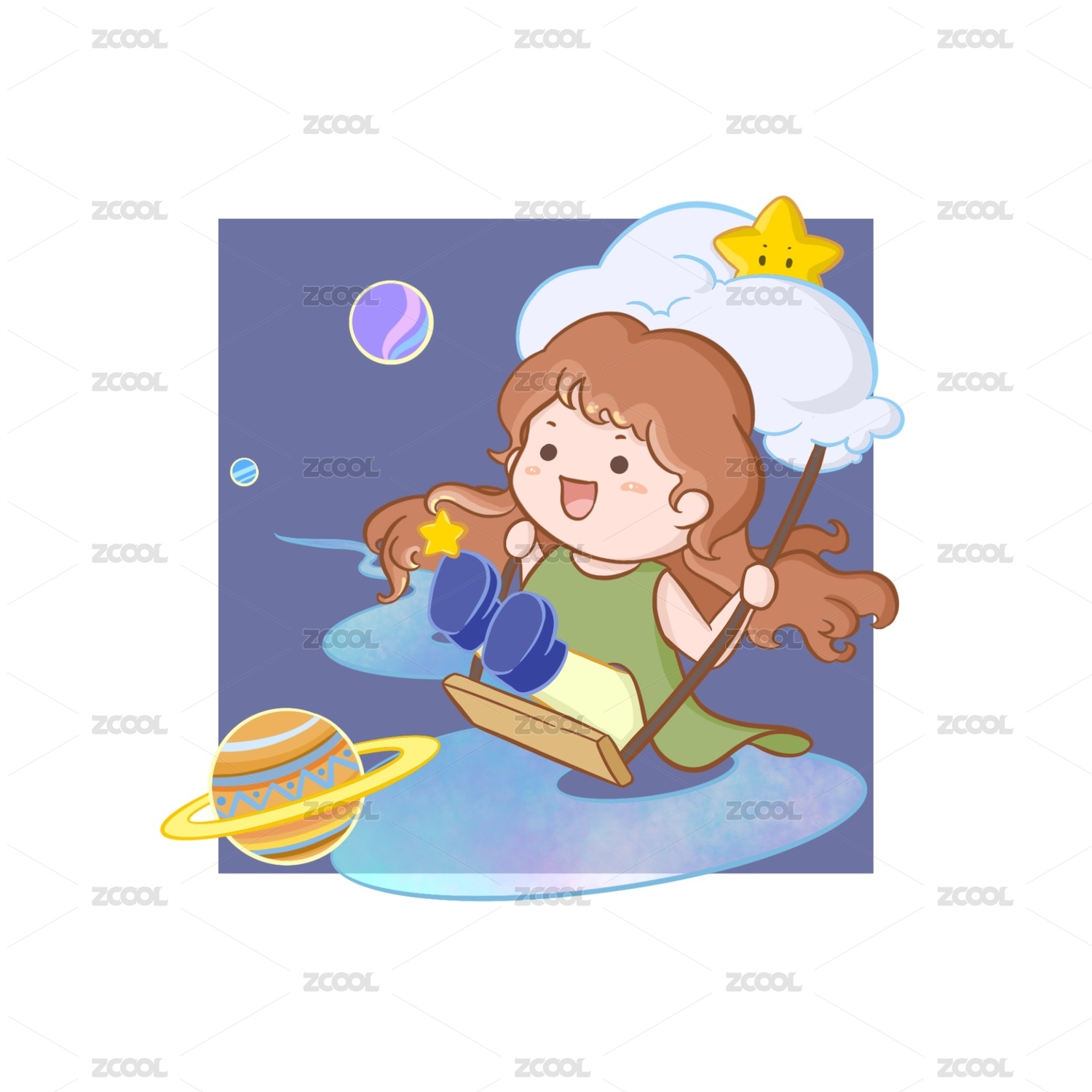 太空秋千童年探險兒童插畫