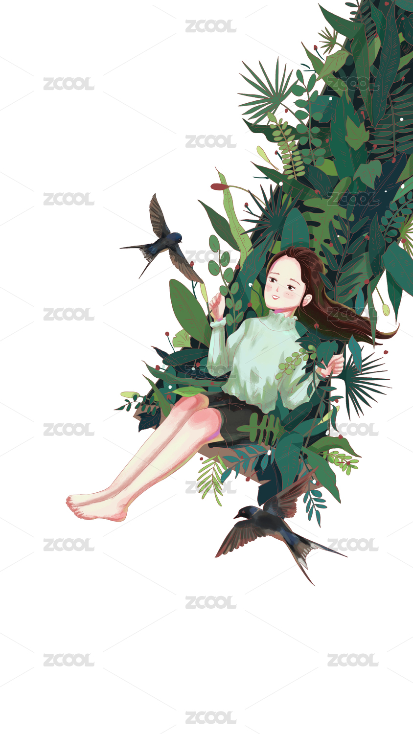 可愛的女孩在蕩秋千玩耍插畫人物元素