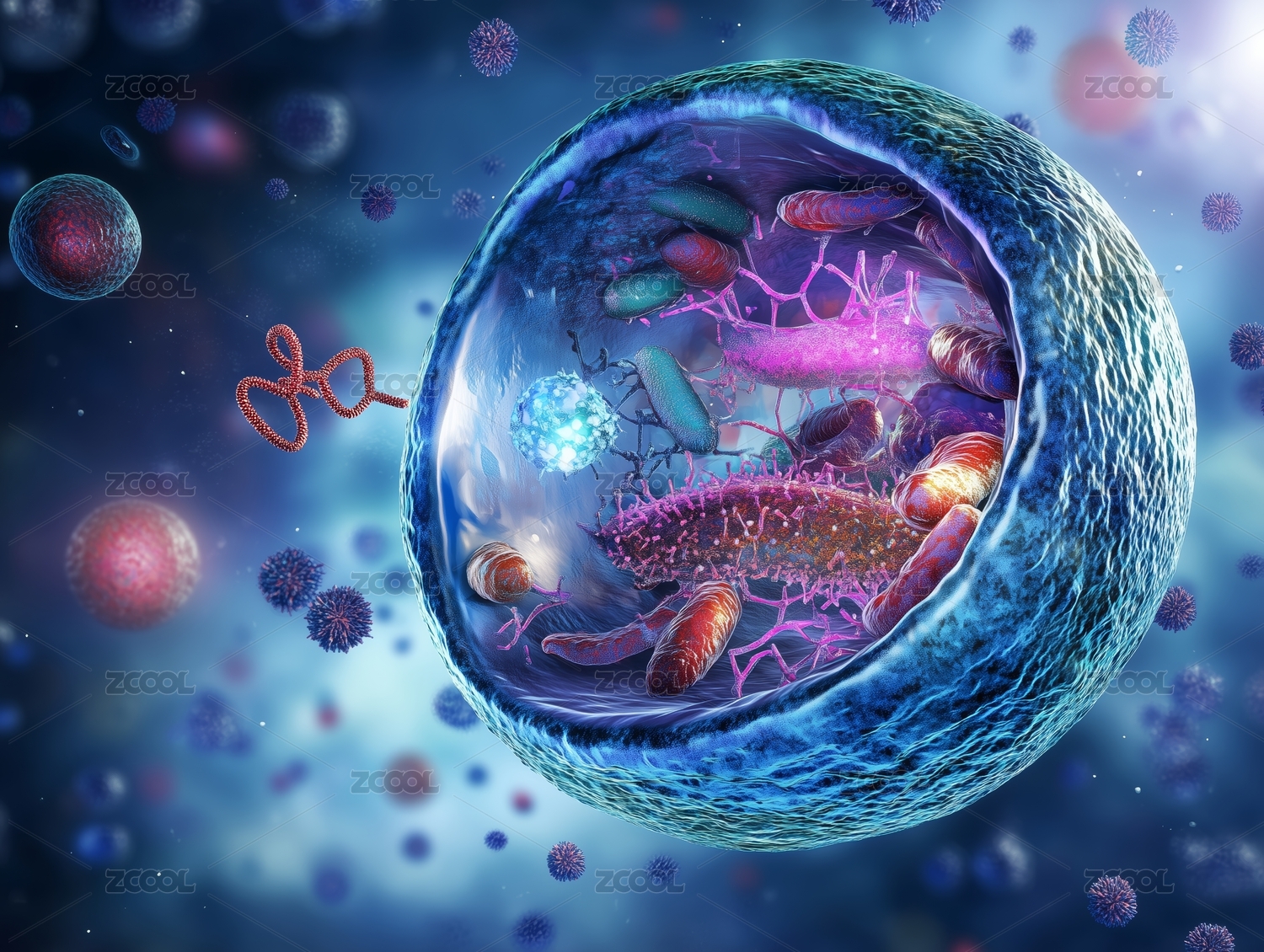生物學科細胞基因顯微鏡線粒體科研矢量插畫