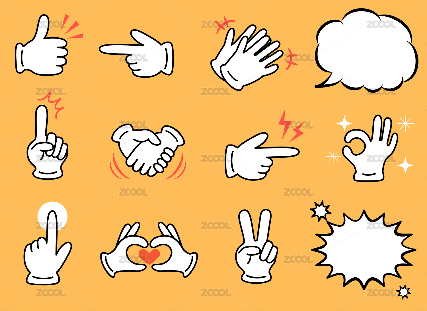 關(guān)鍵推銷手勢(shì)和漫畫框圖標(biāo)