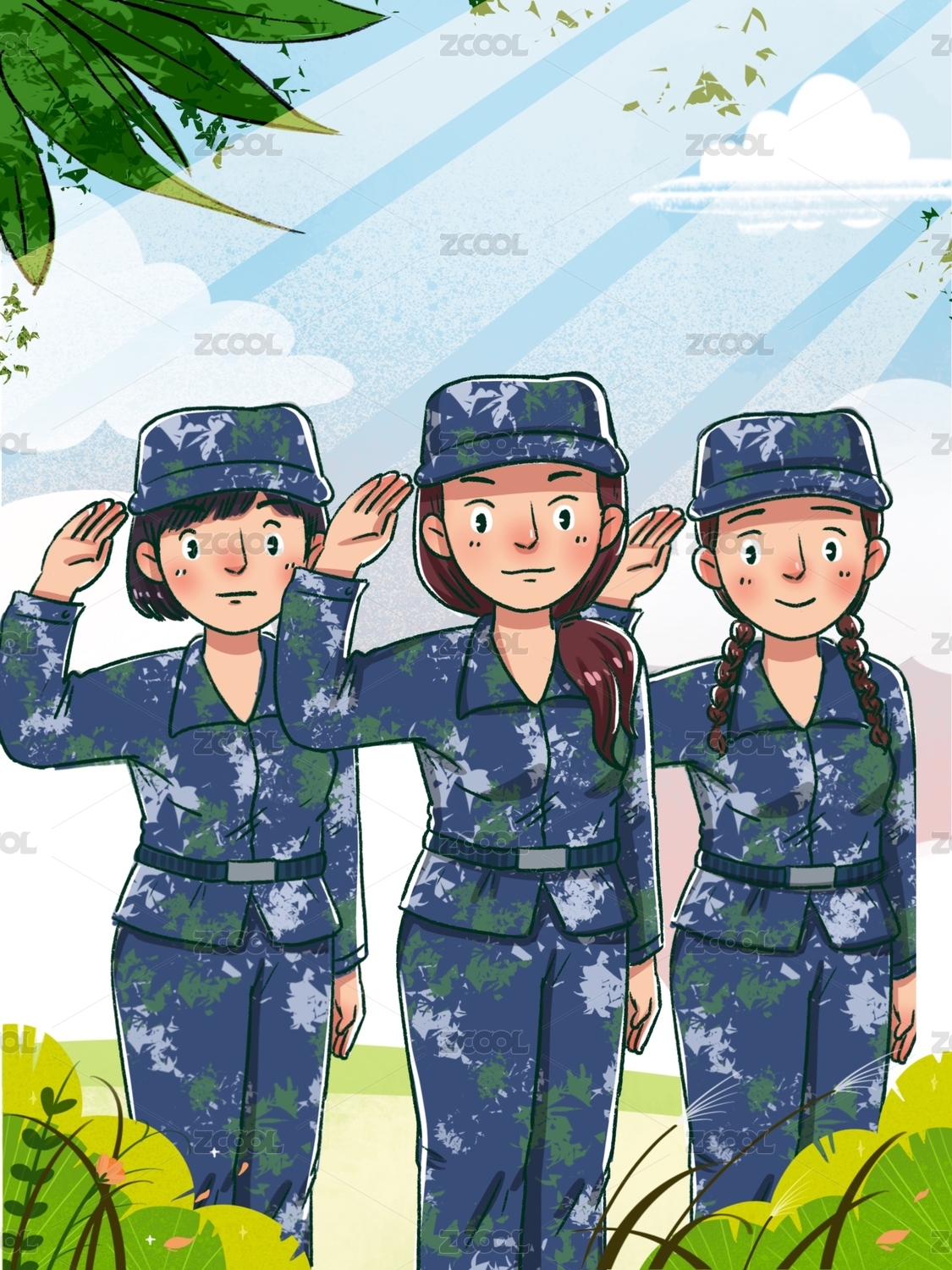 清新開學軍訓歡迎新同學迎新鍛煉插畫
