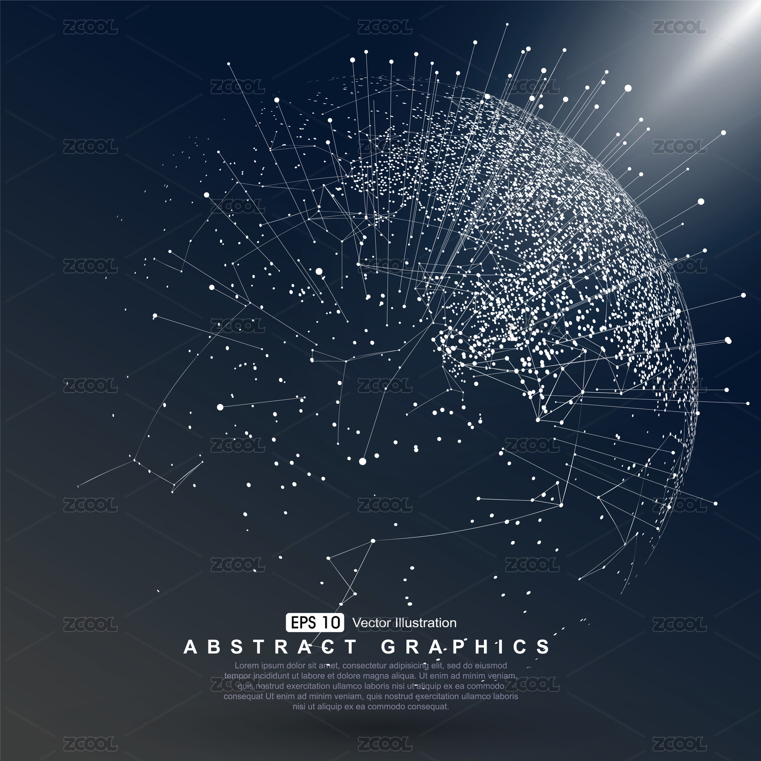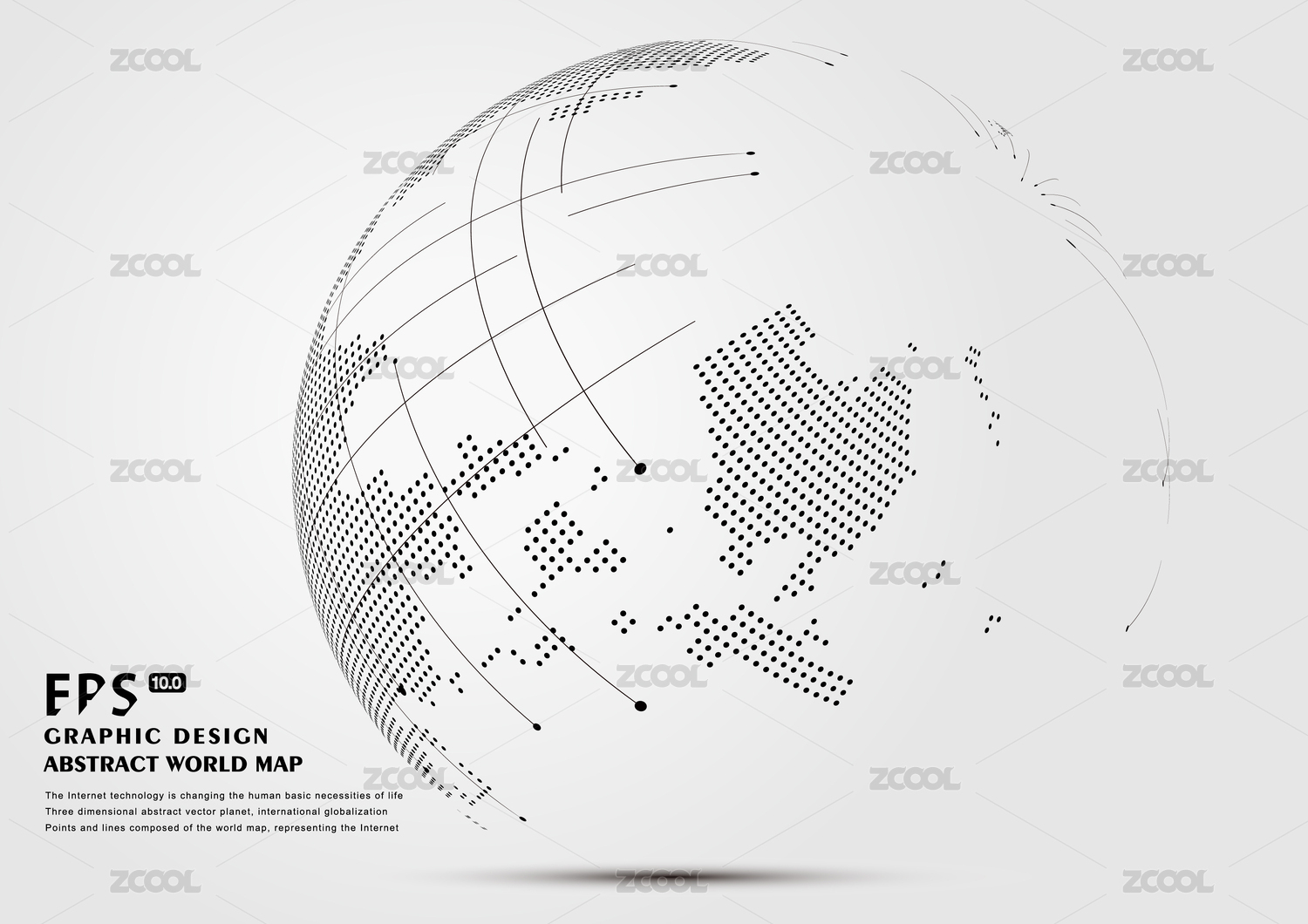 點(diǎn)構(gòu)造球面線框、世界地圖、科學(xué)、技術(shù)科技意義,寓意全球化、國際化,球形世界地圖