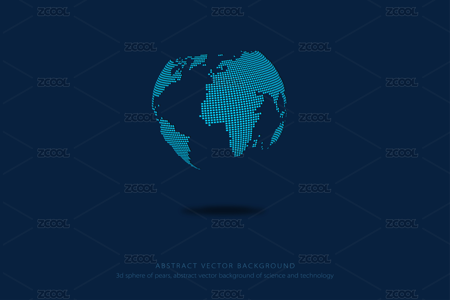 方塊像素點(diǎn)組成的三維球體,世界地圖,科學(xué)技術(shù)矢量背景圖