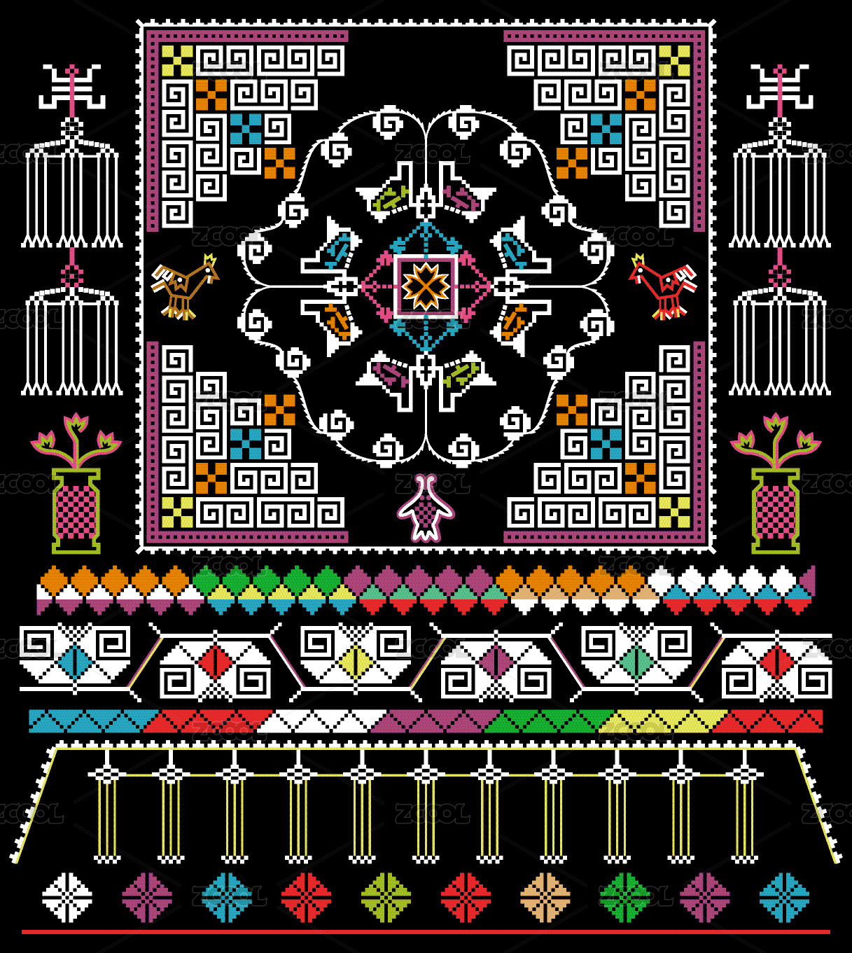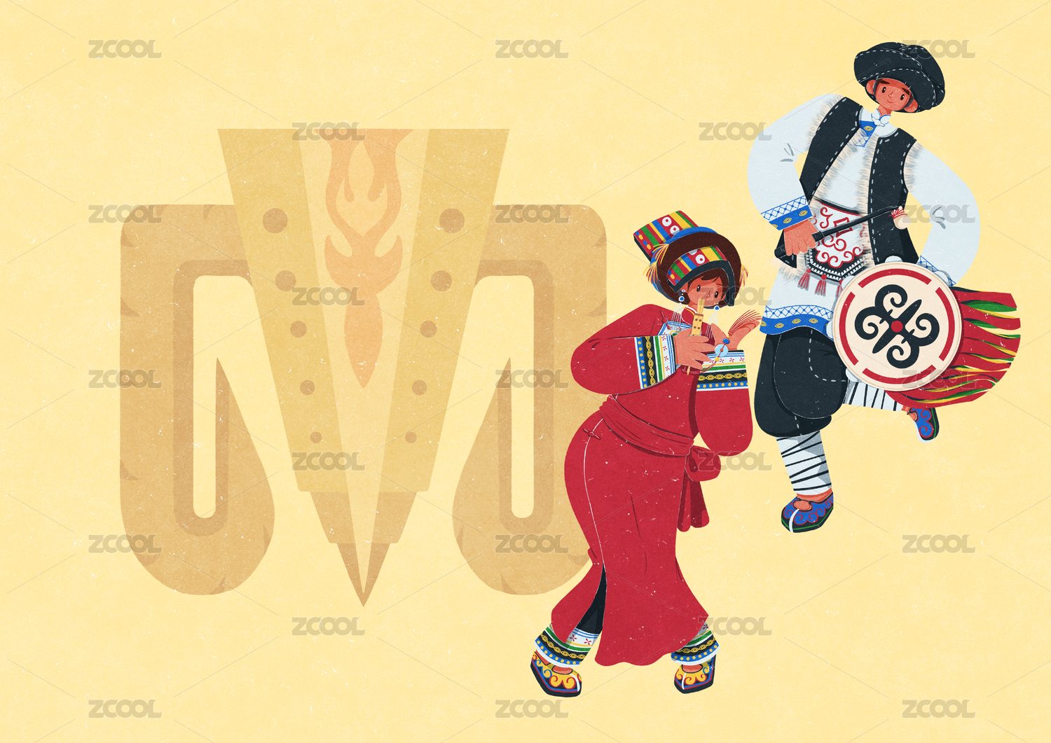 中國五十六個民族羌族少女盛裝女性服飾插畫