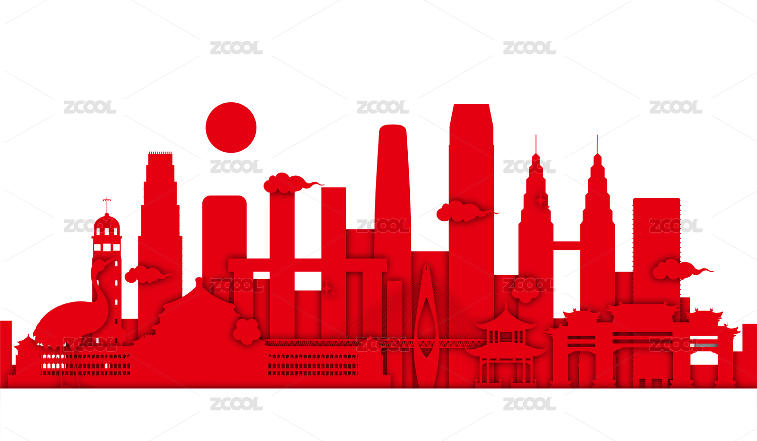 剪紙風(fēng)重慶地標(biāo)建筑矢量插畫
