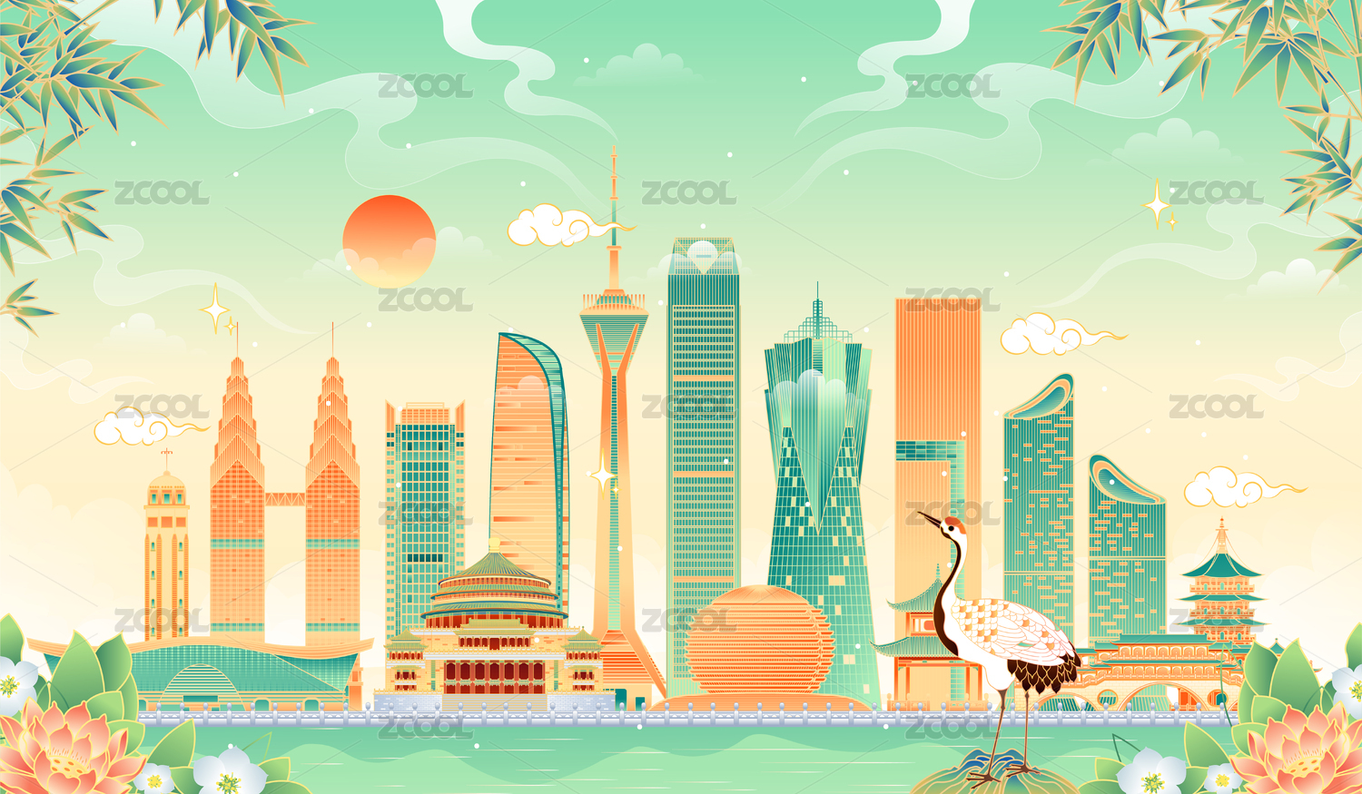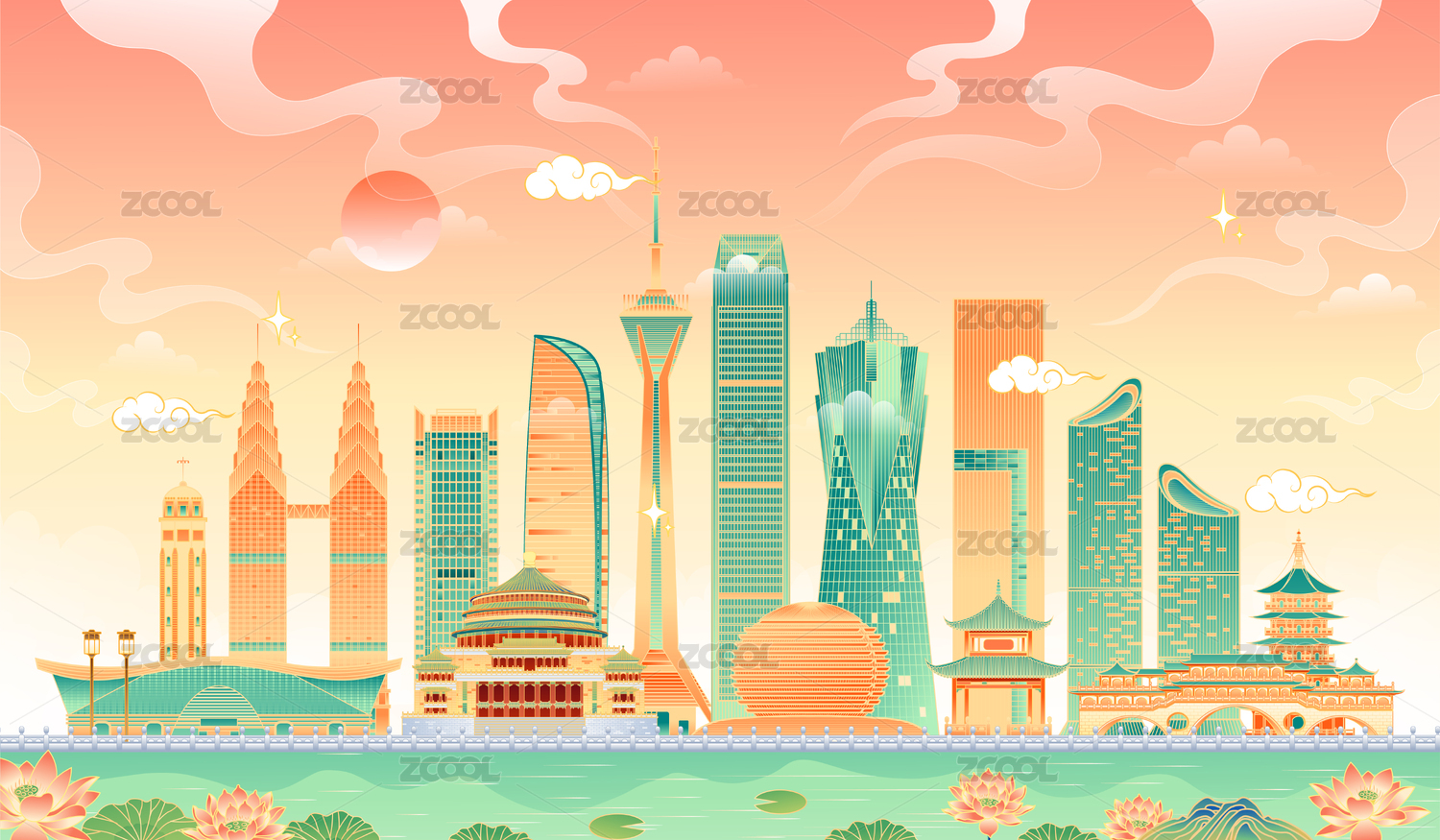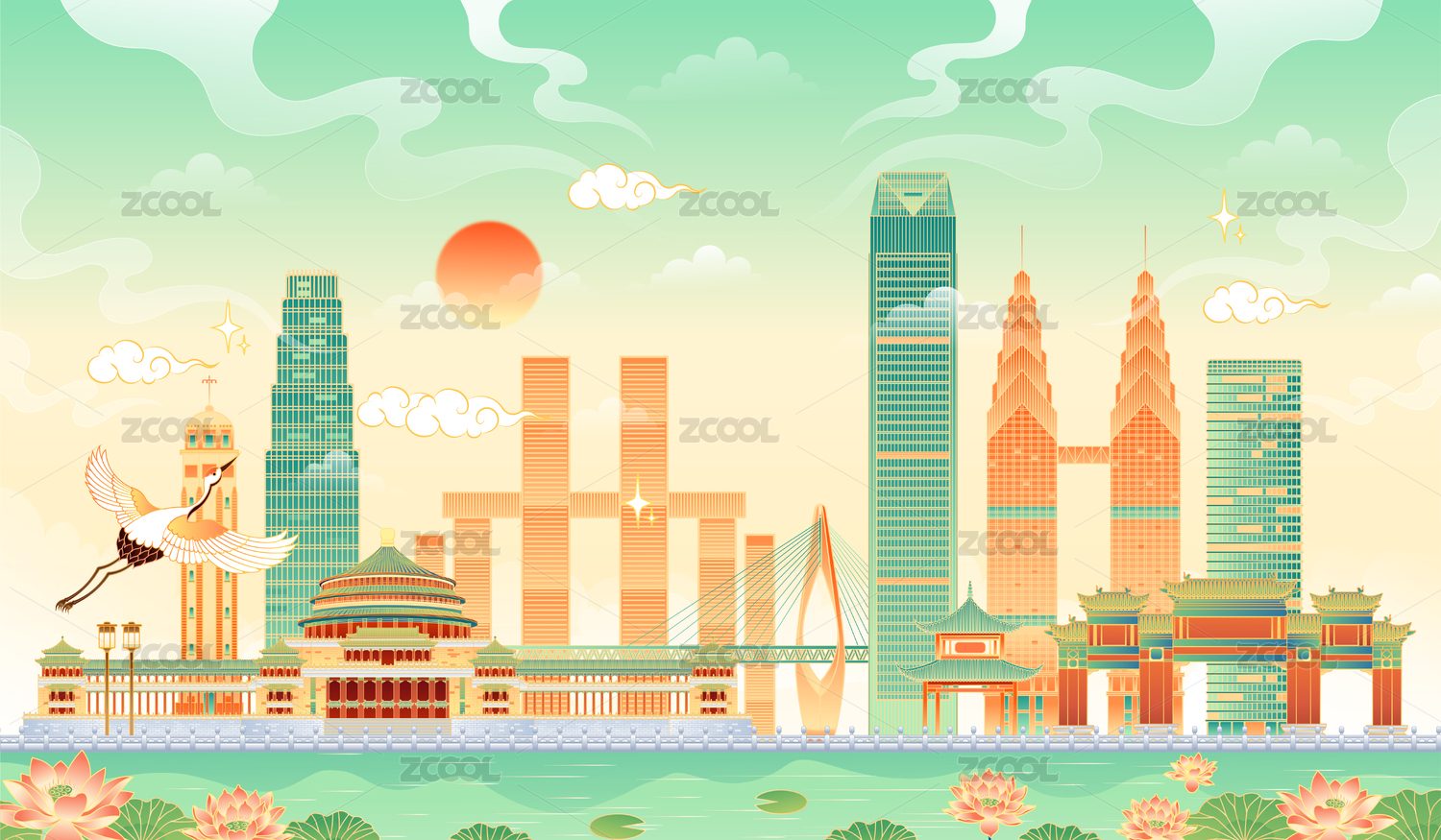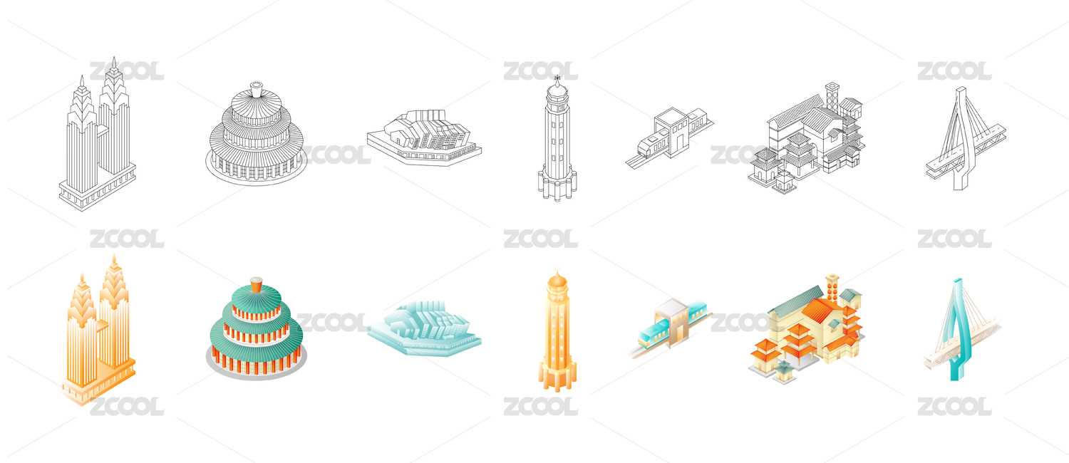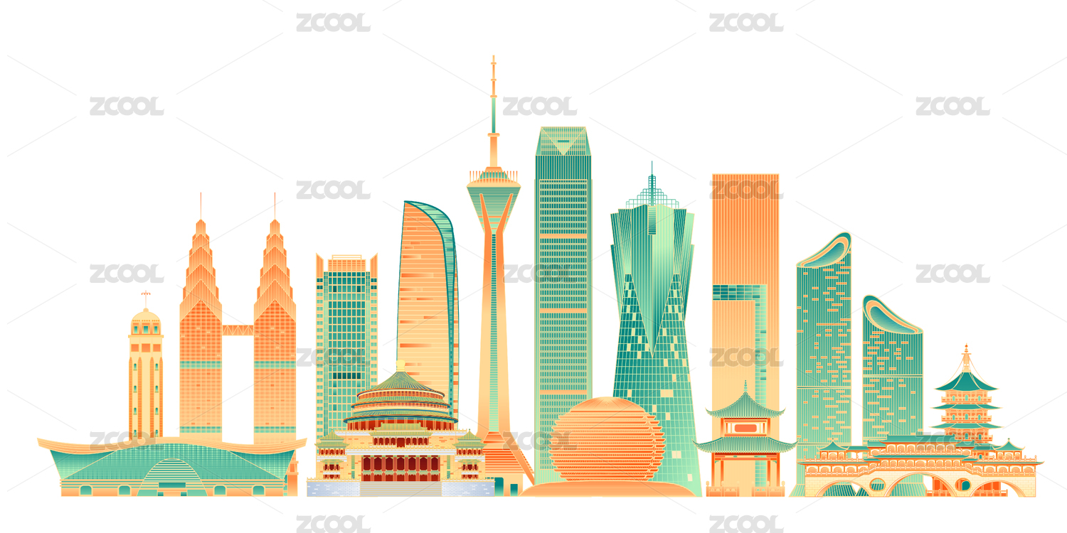 成都杭州重慶地標(biāo)建筑矢量插畫