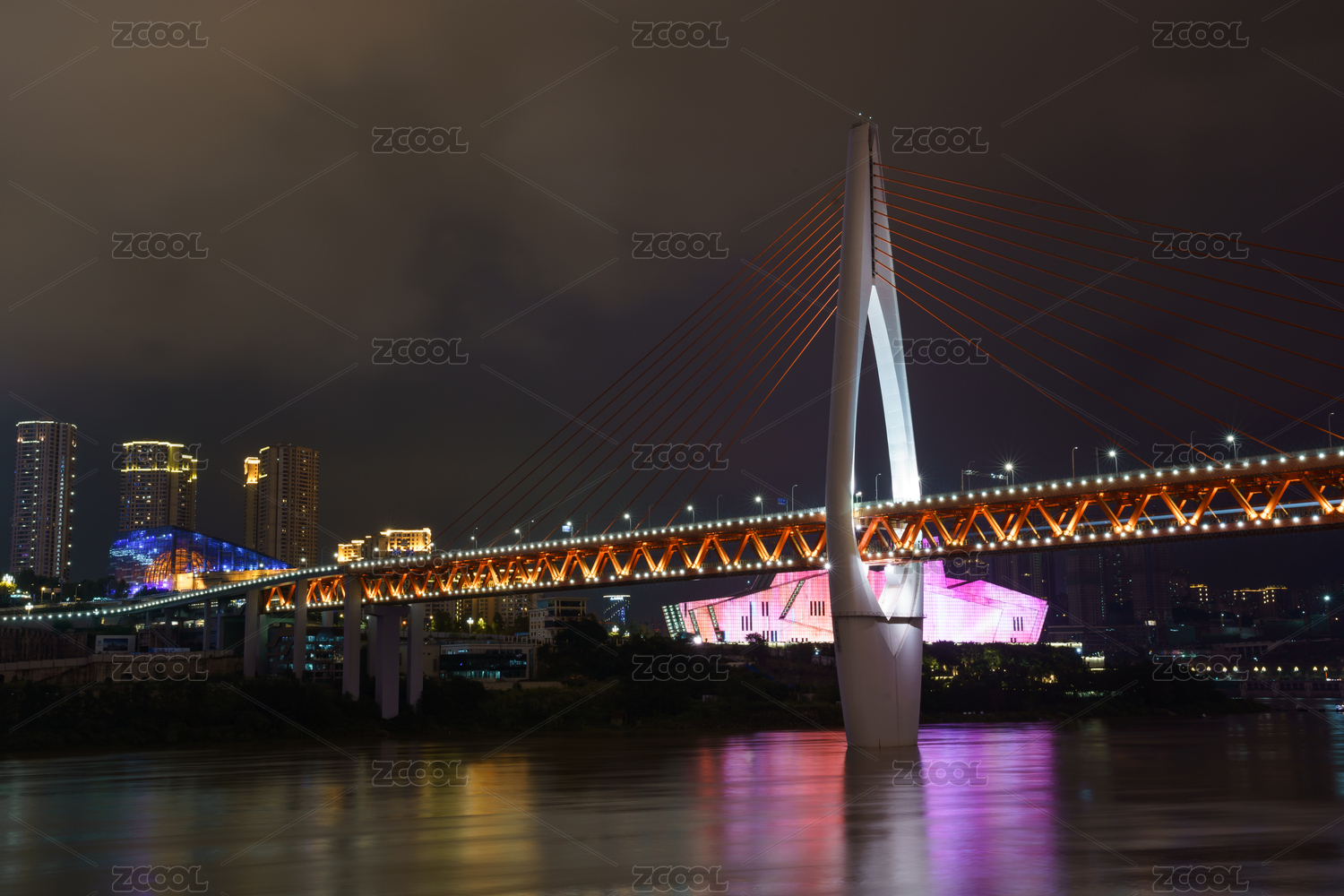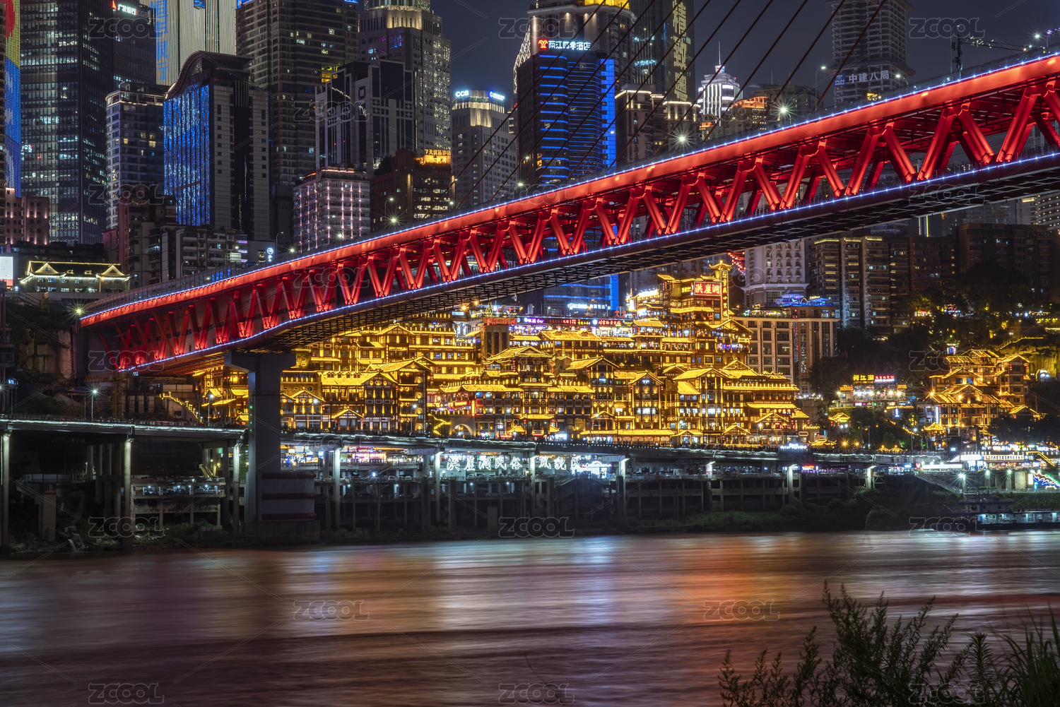 重慶地標(biāo)網(wǎng)紅景點(diǎn)千廝門大橋和洪崖洞的風(fēng)光夜景