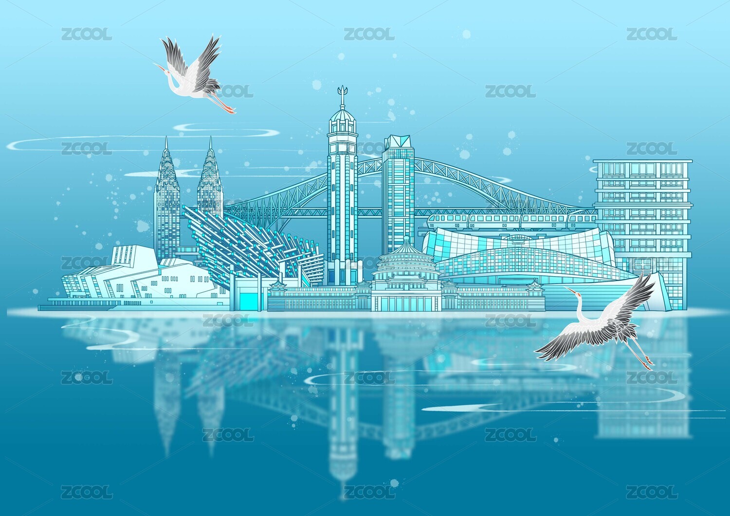 藍(lán)色重慶地標(biāo)建筑矢量插畫