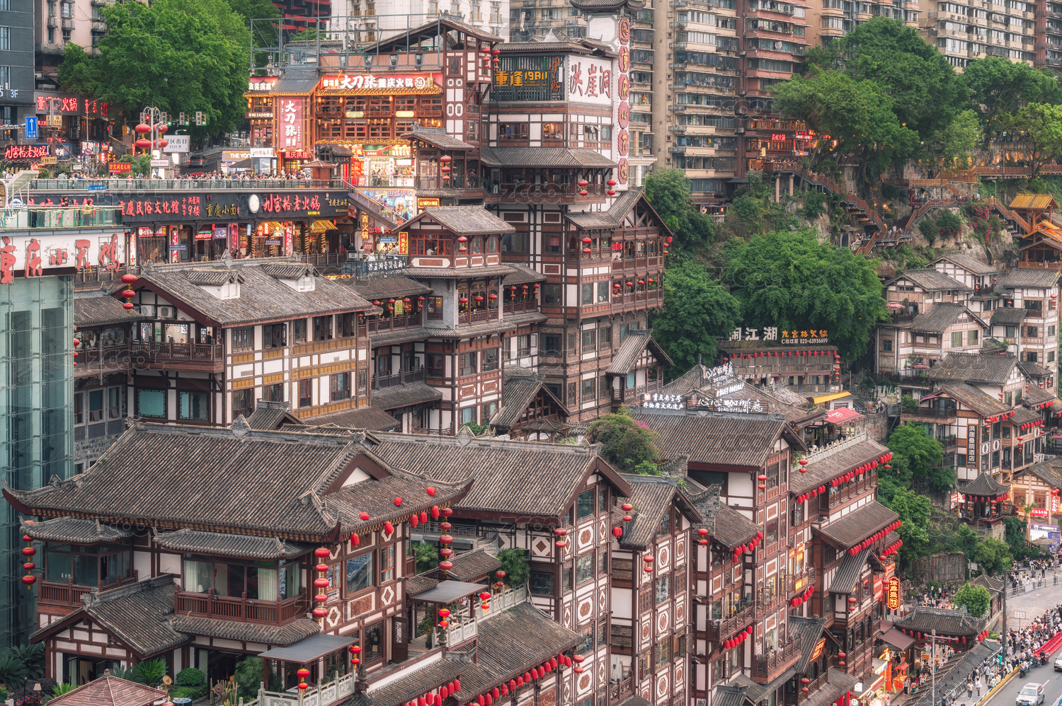重慶地標(biāo)洪崖洞景區(qū)風(fēng)光