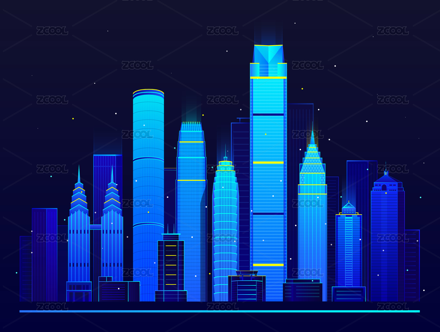 深藍(lán)色中國(guó)重慶地標(biāo)建筑矢量插畫