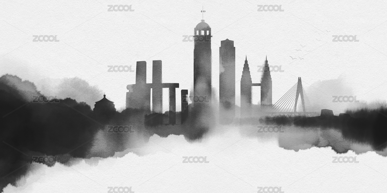 重慶地標(biāo)水彩水墨建筑插畫
