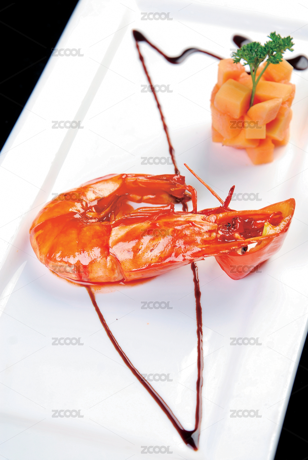 長(zhǎng)方形白盤一只油燜大蝦的意境擺盤