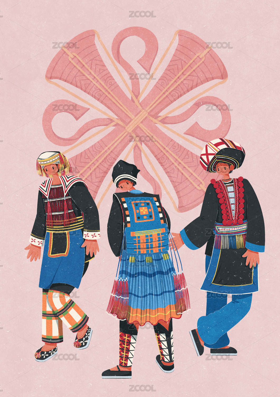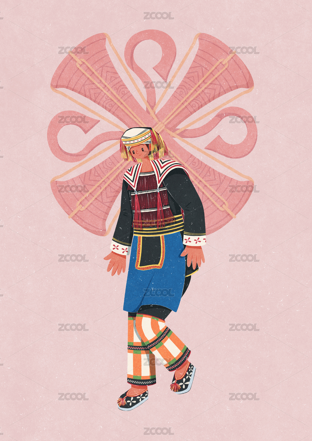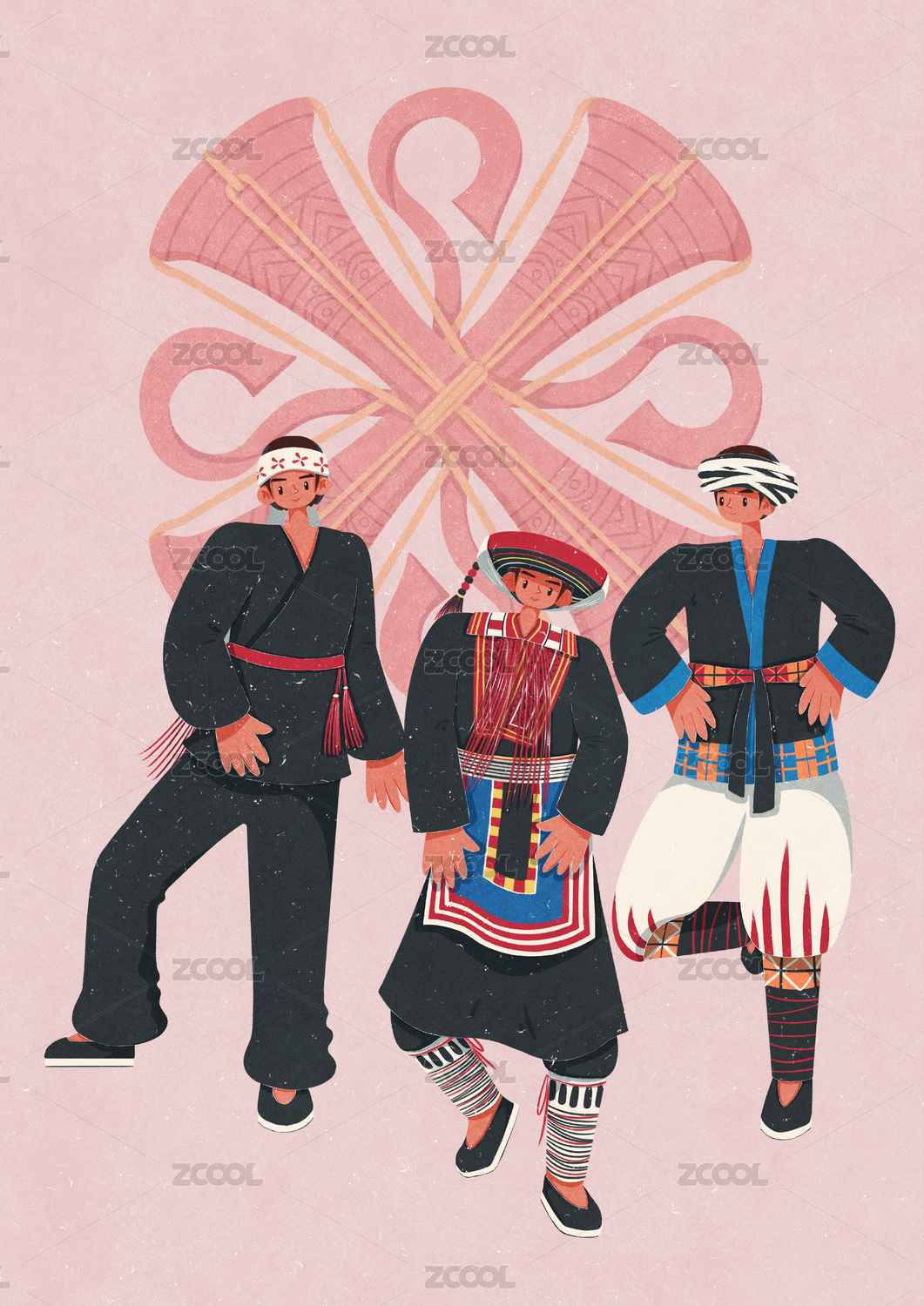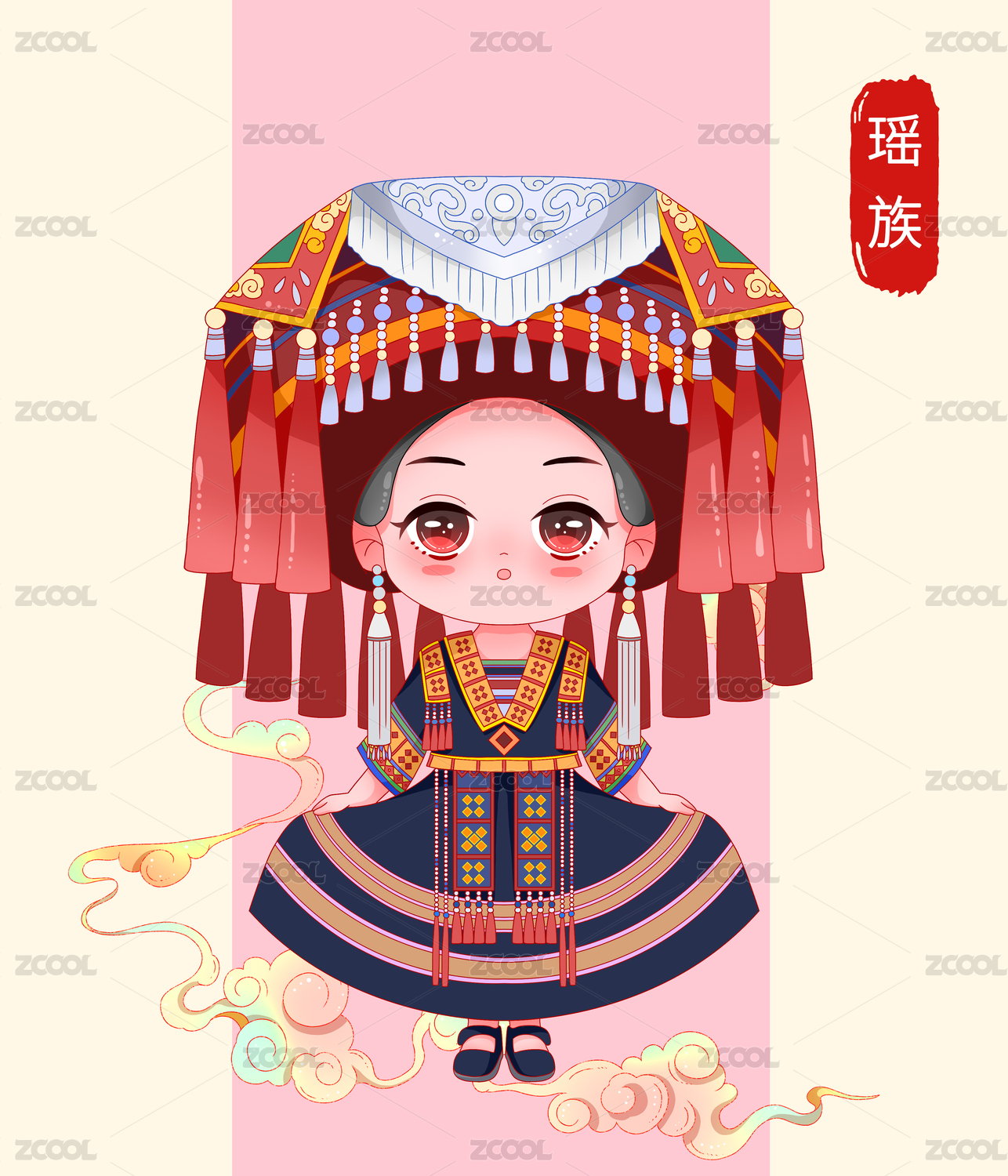 國潮卡通五十六個(gè)民族瑤族