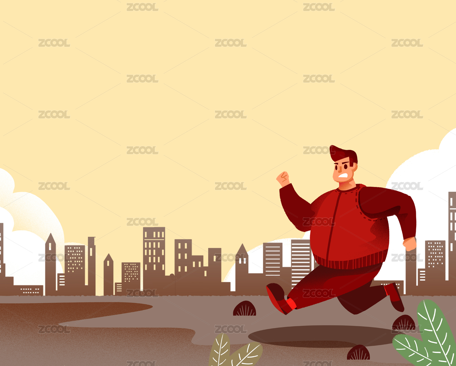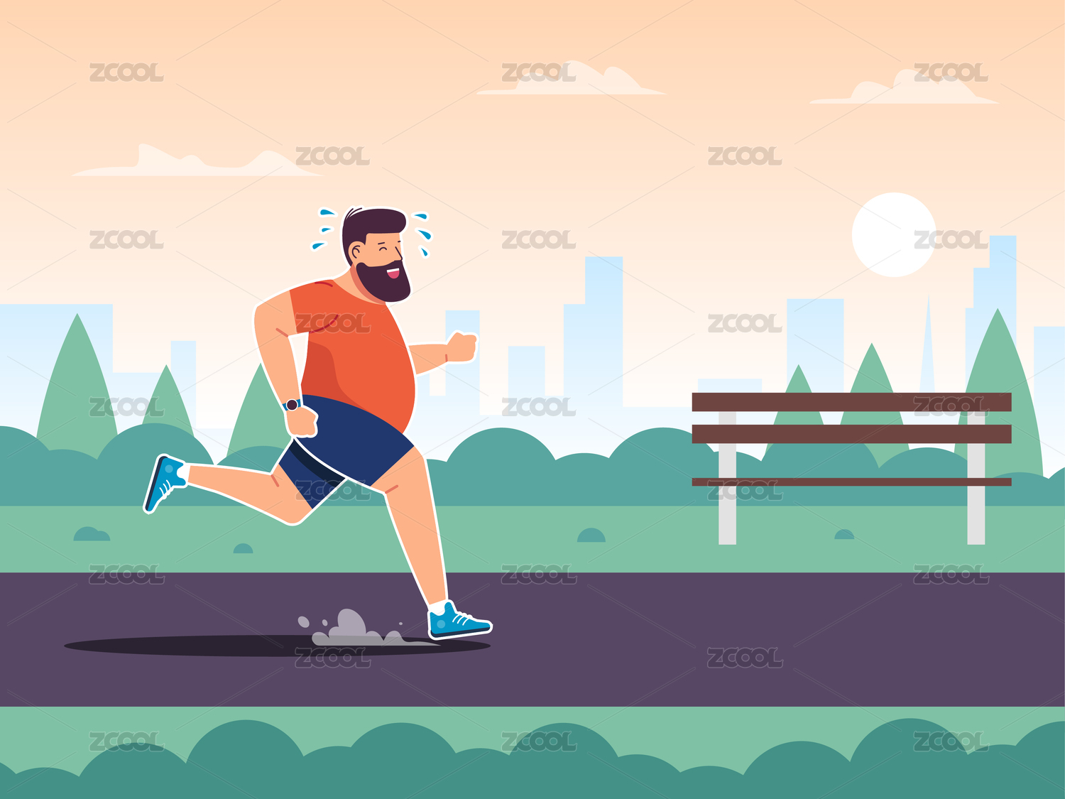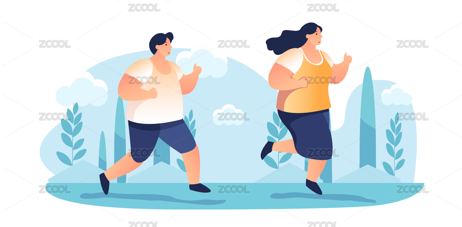 跑步中的胖子矢量插畫