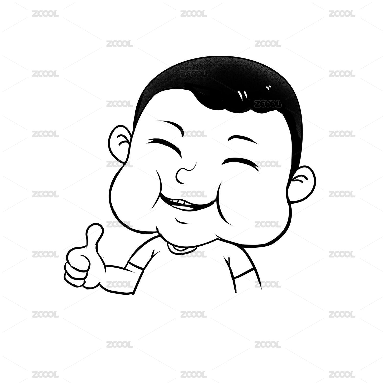 穿棕色外套的卡通胖男孩