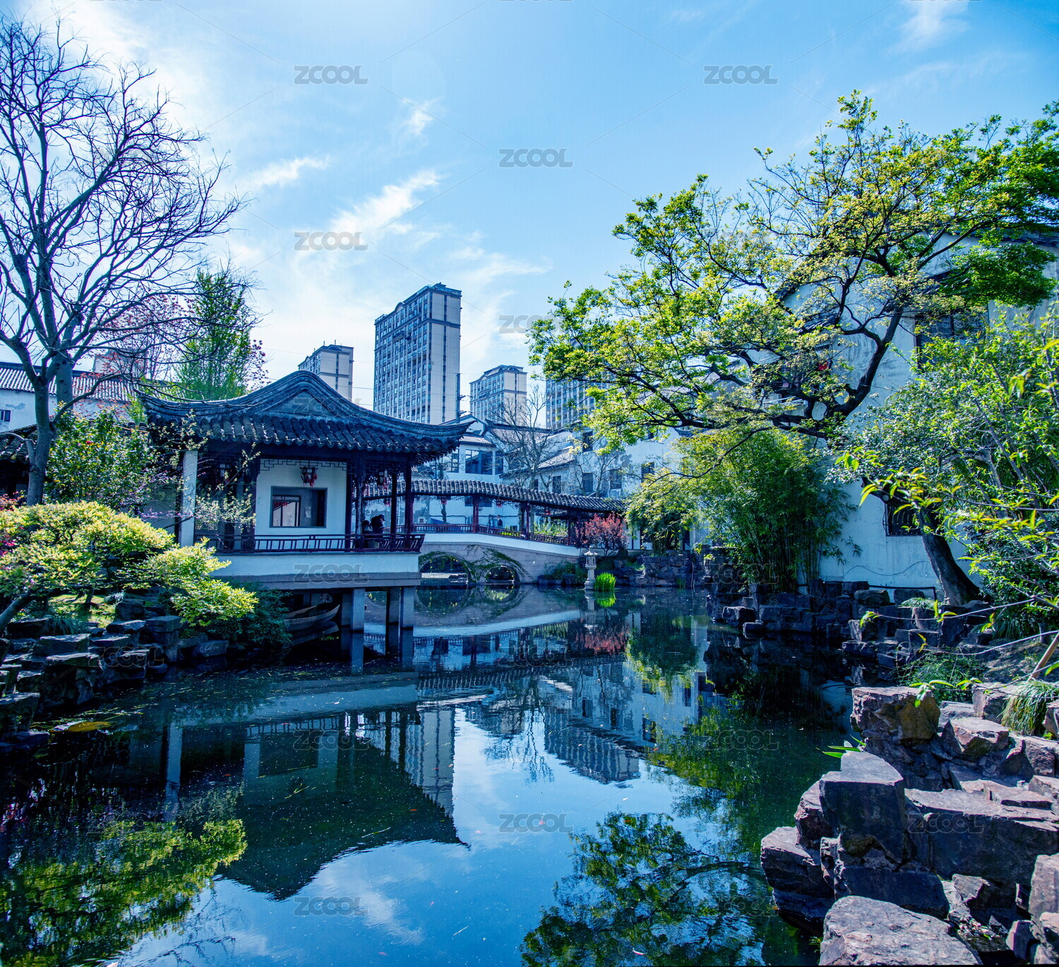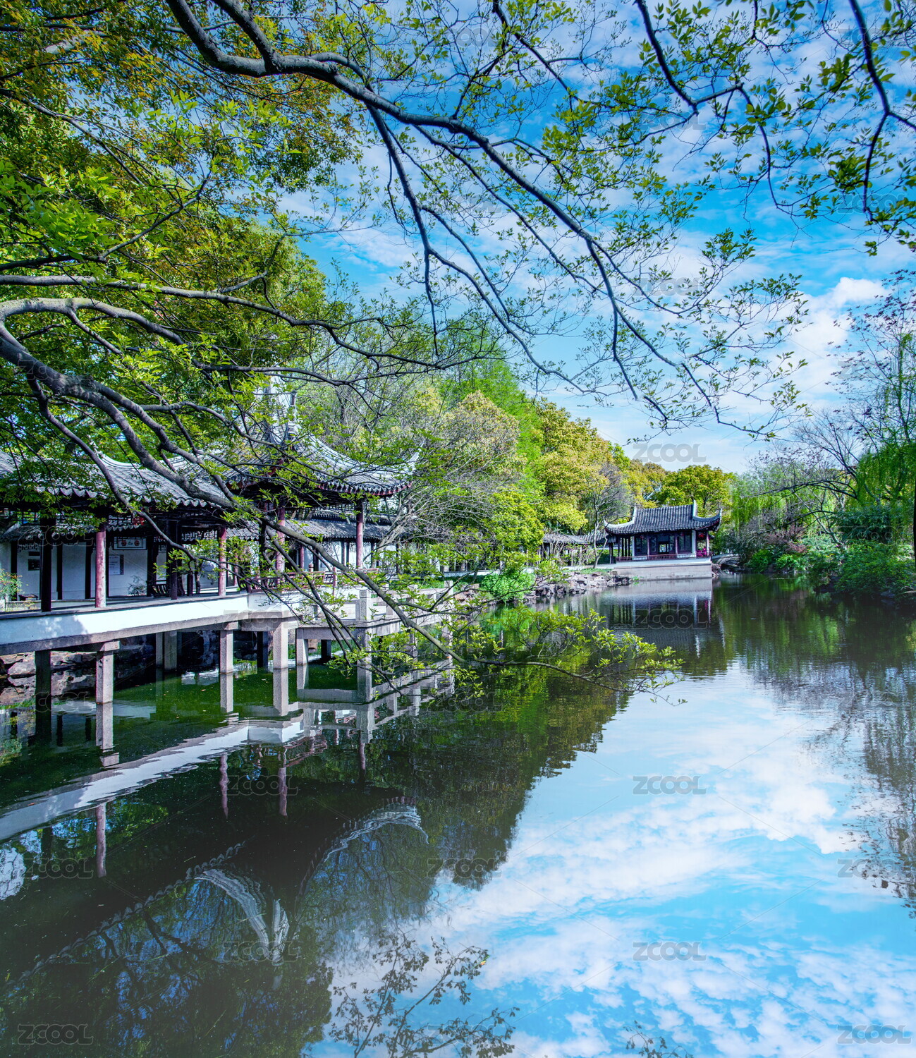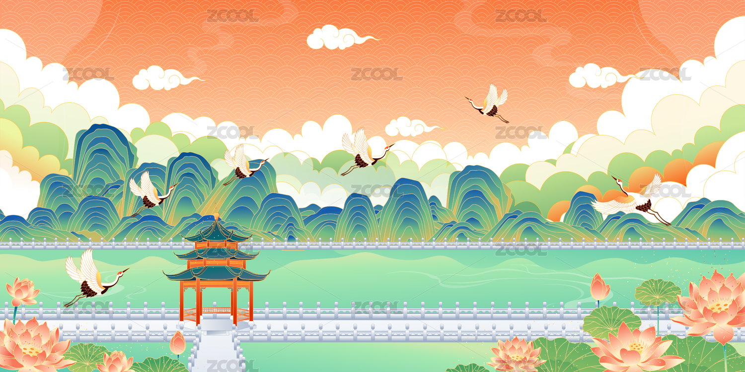 江南園林矢量風(fēng)景插畫