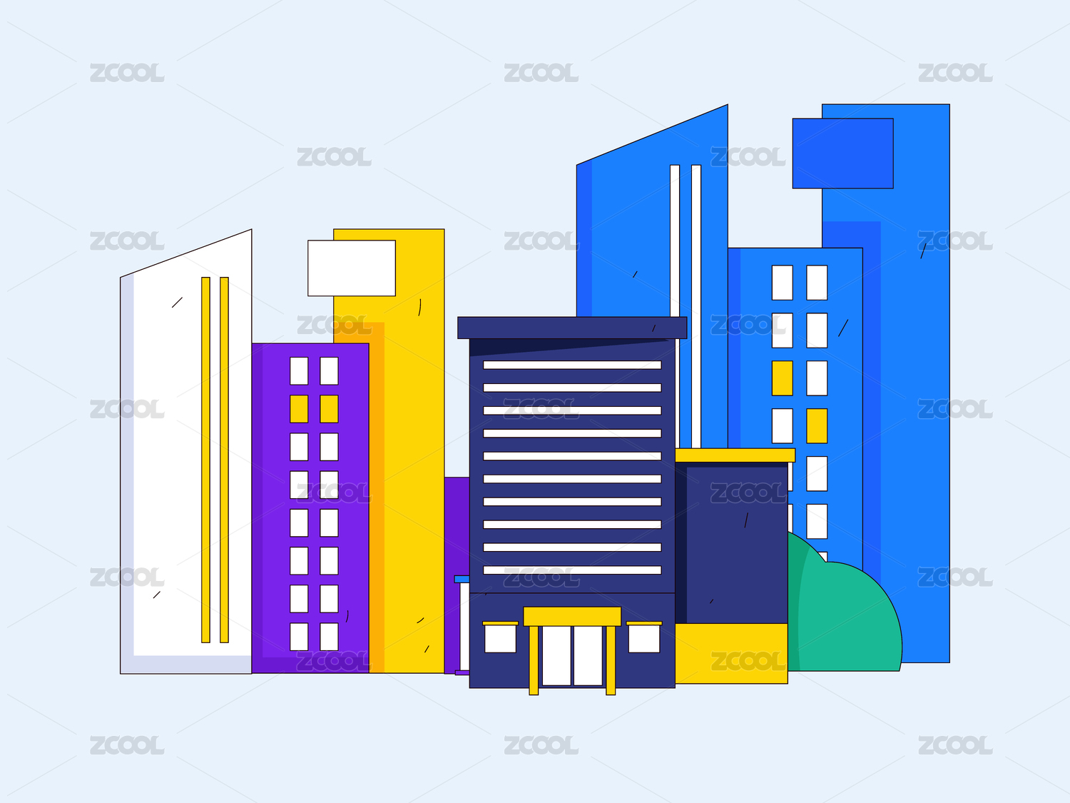 城市中的屋子建筑矢量概念運(yùn)營(yíng)插畫(huà)