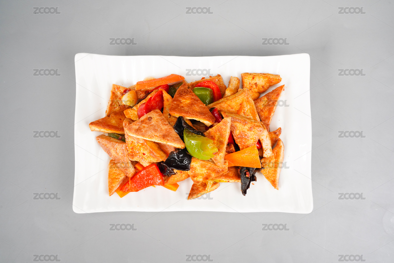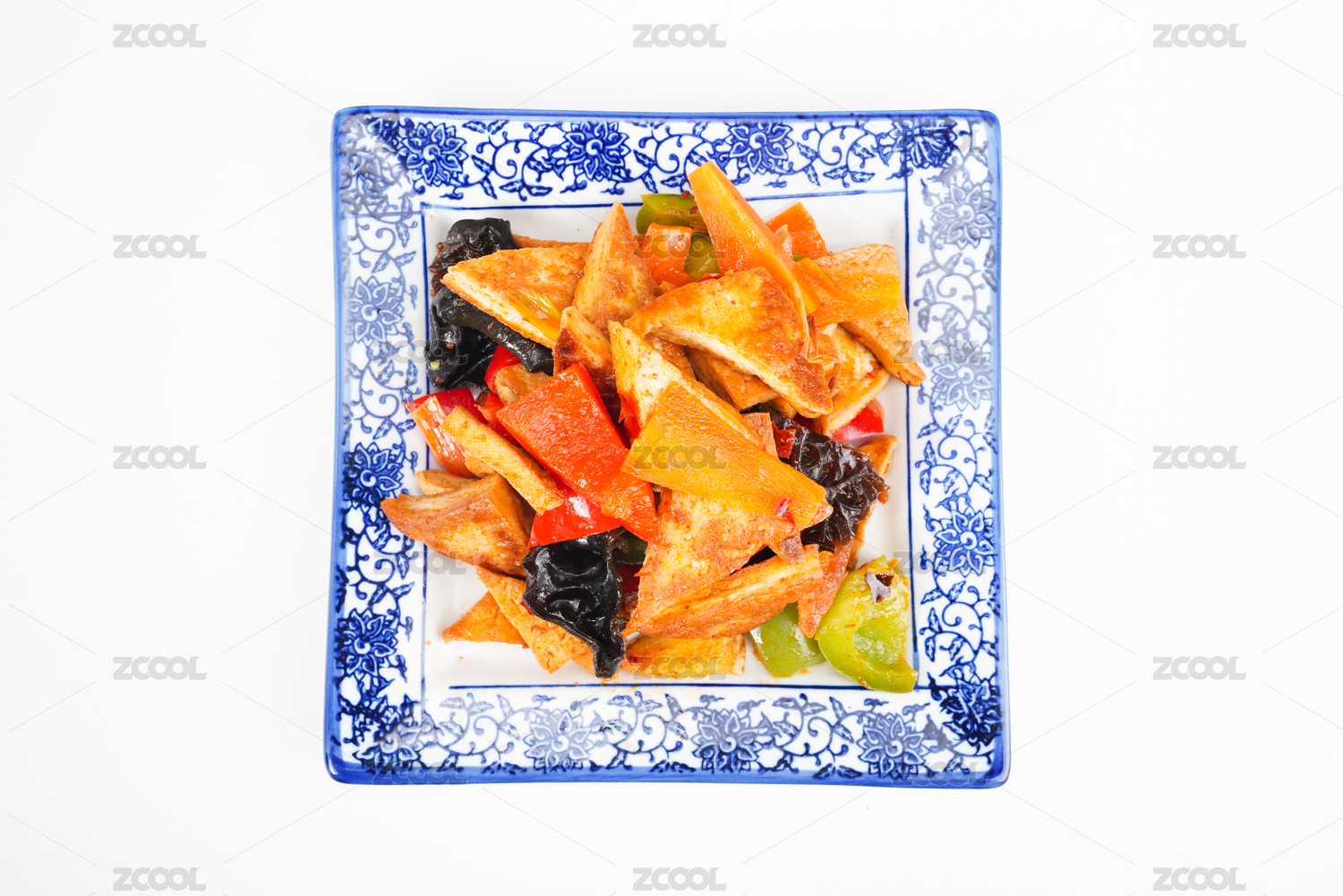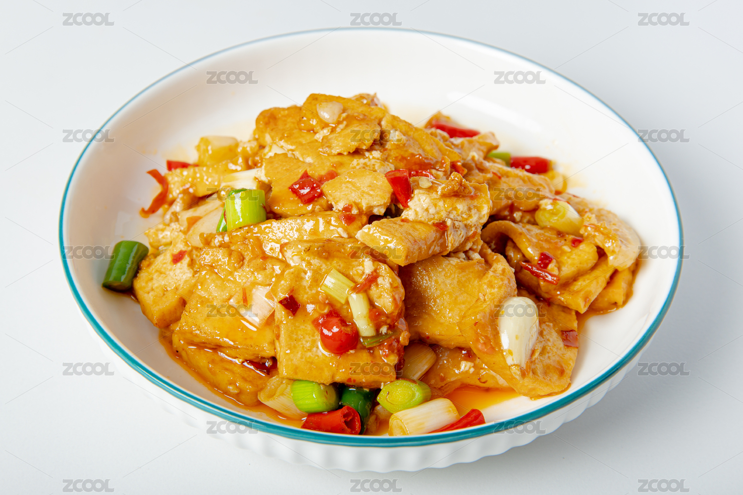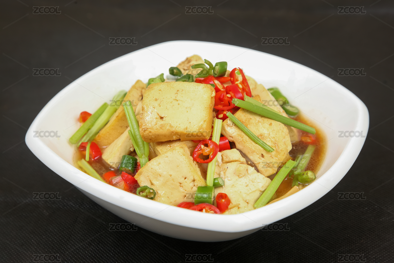 中國(guó)傳統(tǒng)菜品家常豆腐盛放在瓷碗中