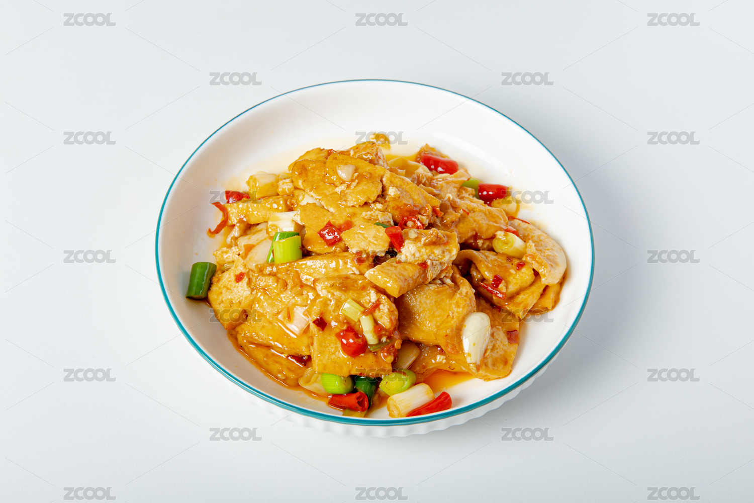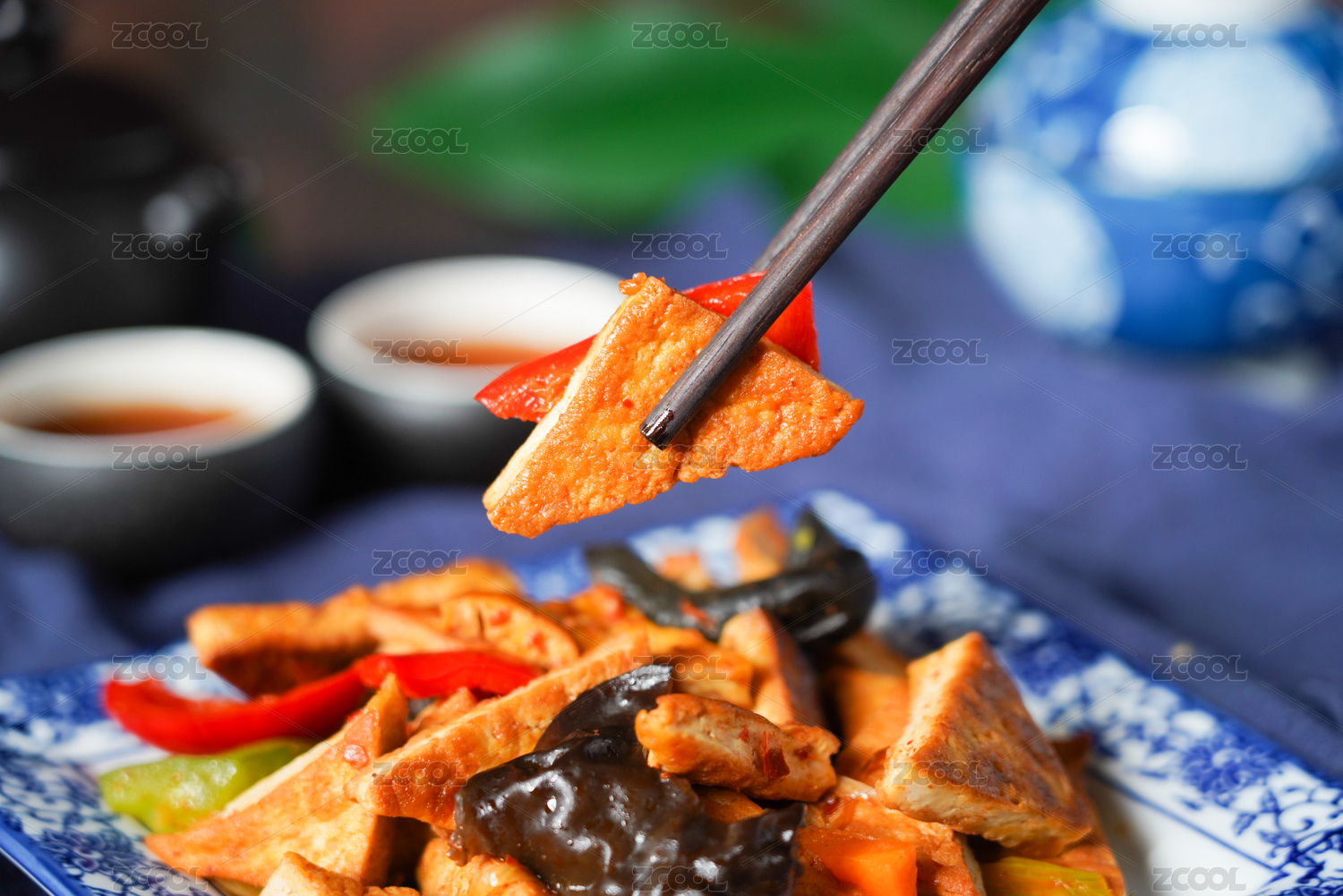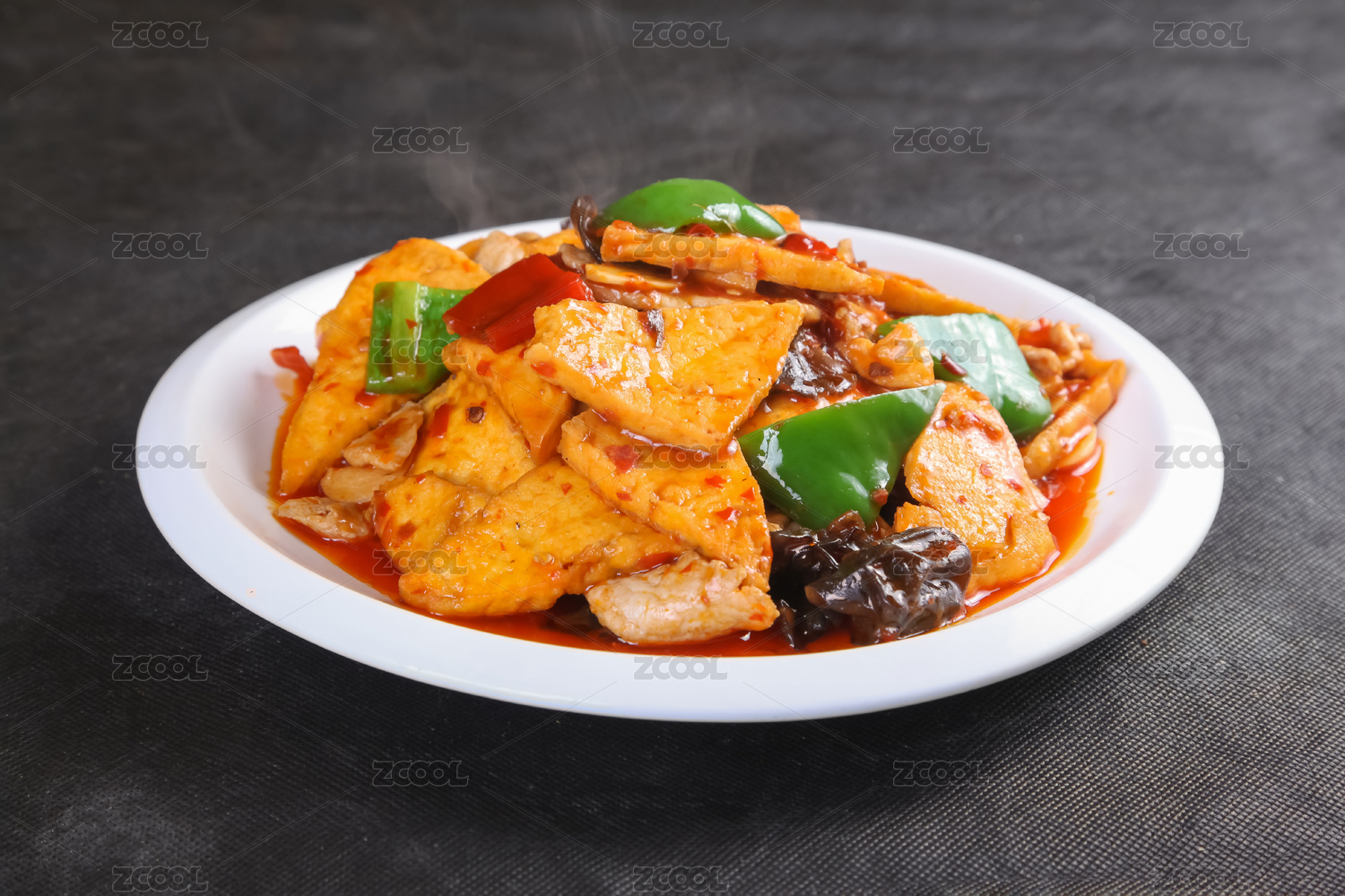 中國(guó)傳統(tǒng)菜品家常豆腐盛放在瓷碗中